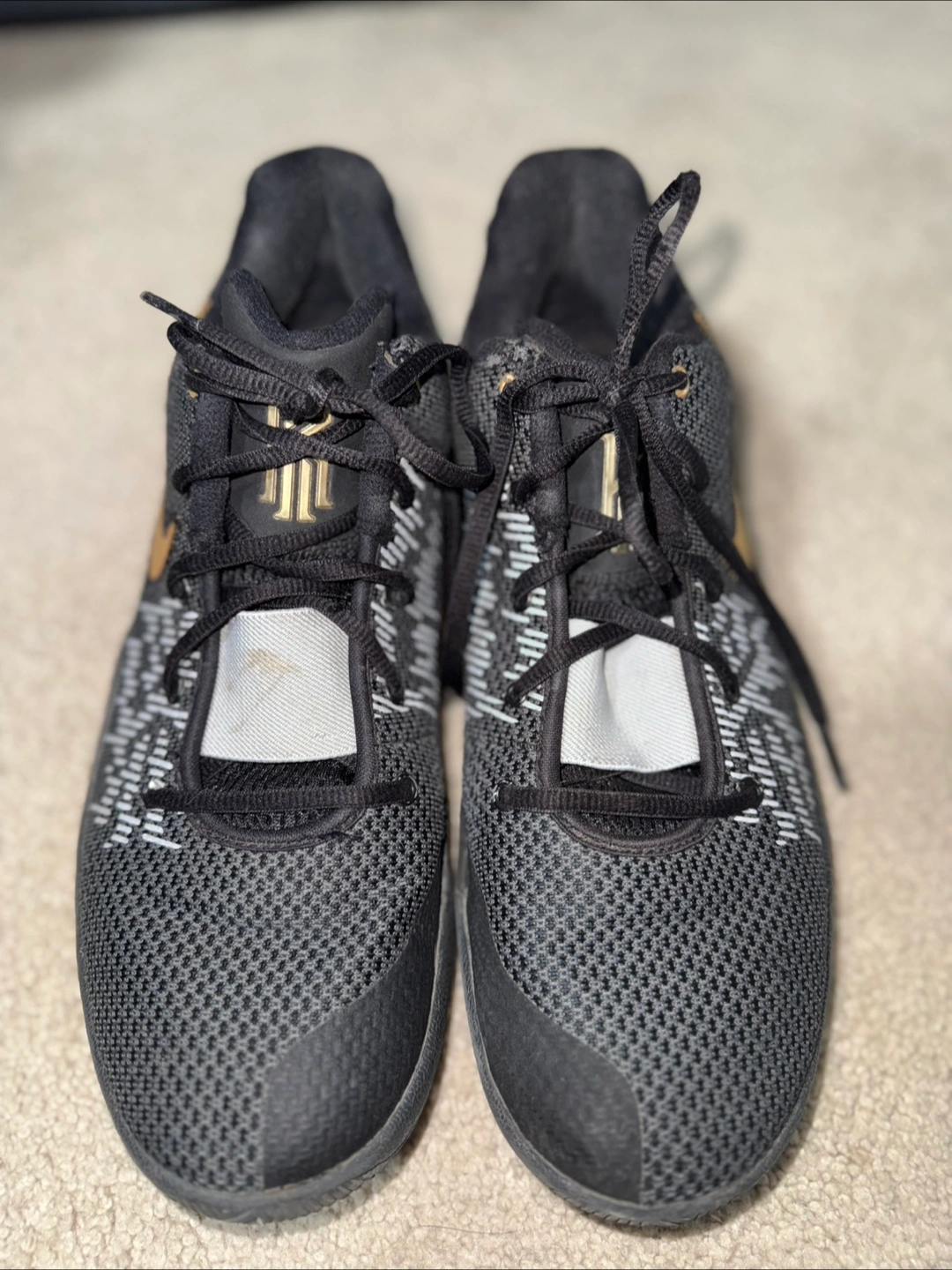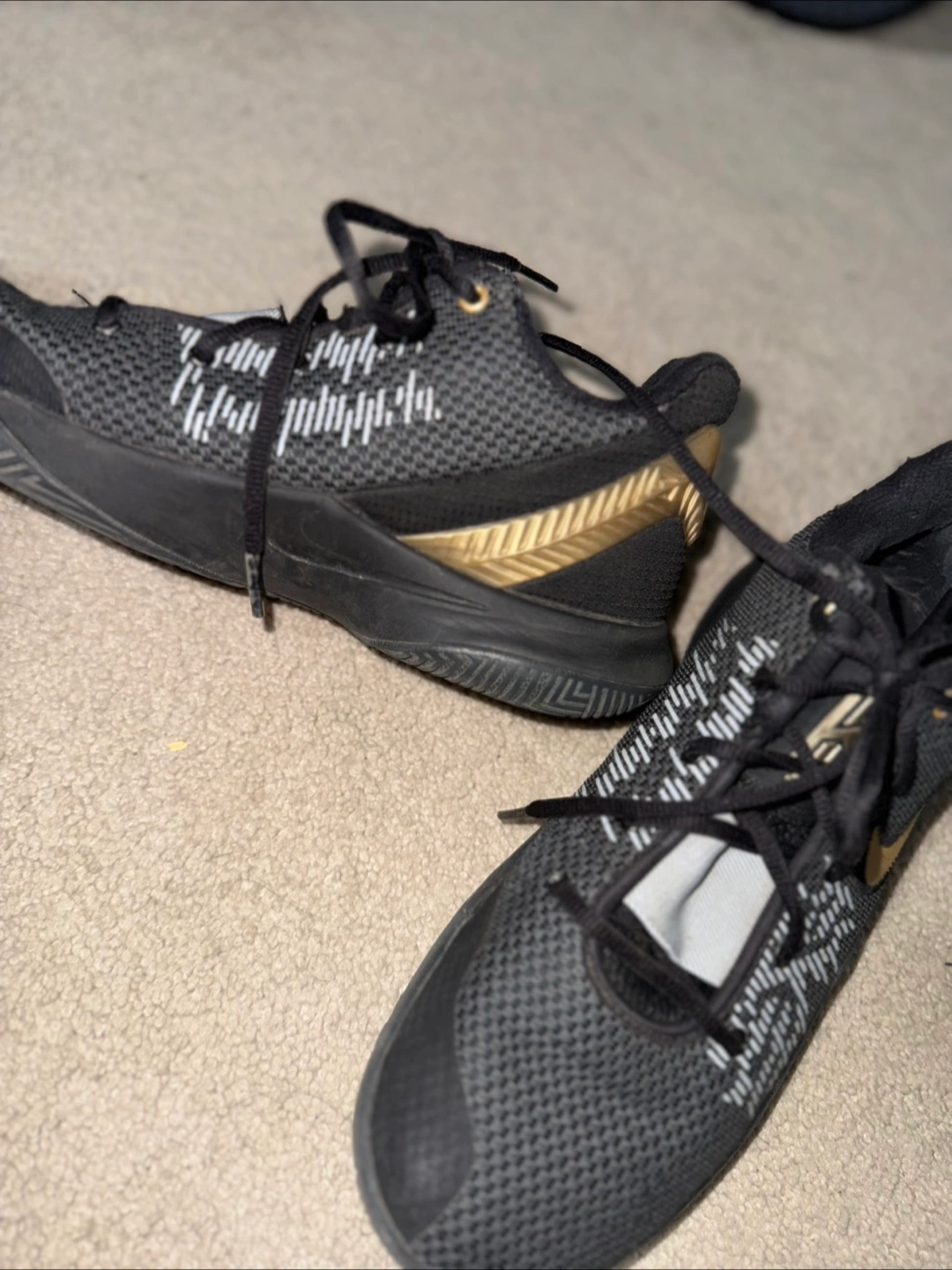 Selling a pair of Nike Kyrie Flytrap basketball shoes in a sleek black and gold colourway! They're in good condition and ready for the court or casual wear. Please take a look at the photos for a better idea of their condition
