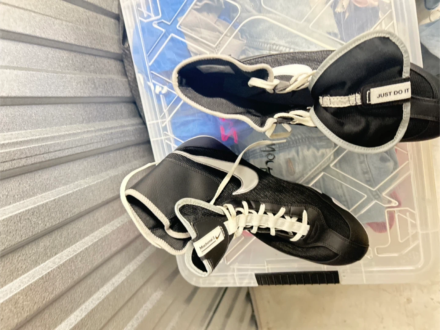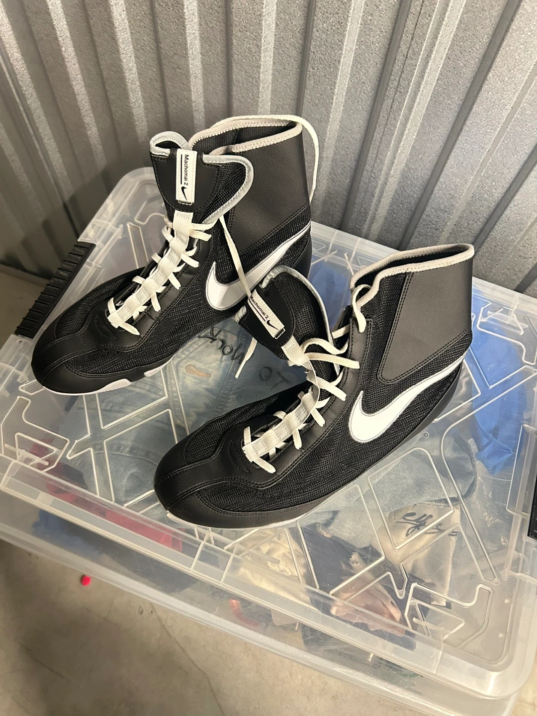 Selling a pair of Nike Machomai boxing shoes in black and white. They're in great shape and ready for your next match or training session! Size is 11 US.
