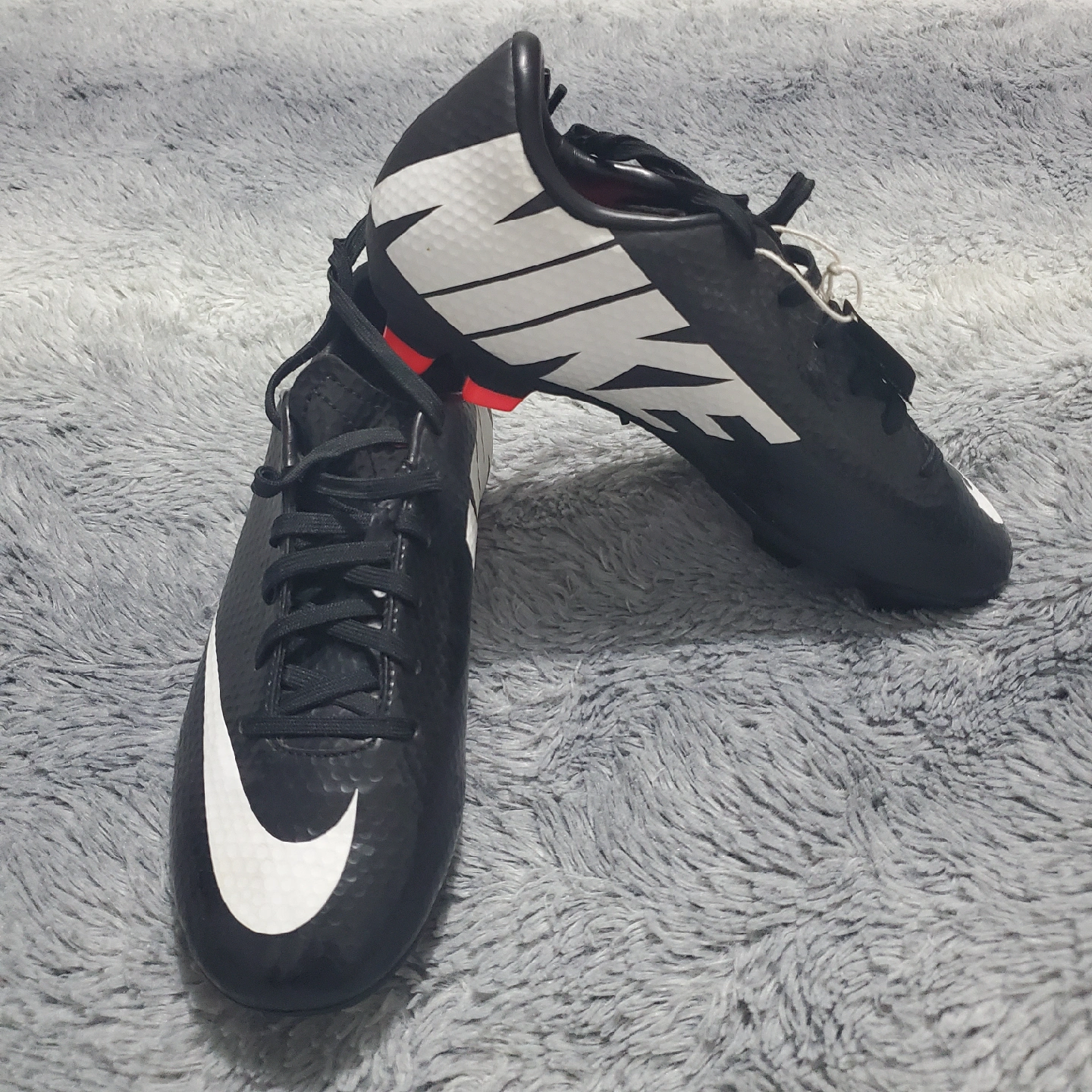 Selling a pair of Nike soccer cleats in black and white. They're in great shape and ready for the field! Perfect for your next game or practice. They feature the classic Nike swoosh design. Size Youth 2.5.