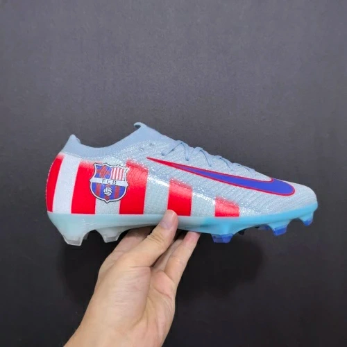 Dm for any quetions. Selling a pair of Nike Mercurial Vapor 15 FG soccer cleats. They feature a light blue colour with red and blue accents, including the Nike swoosh and FCB logo. Great for the pitch!