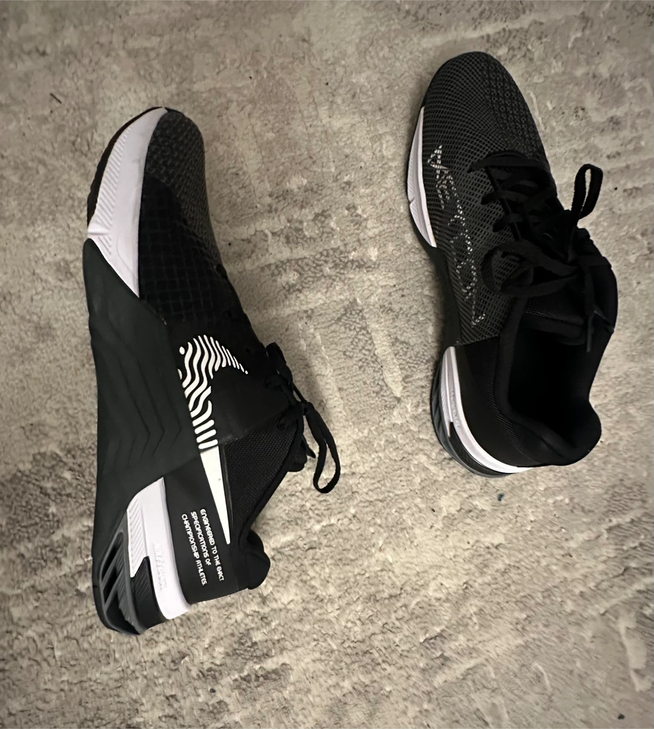 Je vends une paire de Nike Metcon 9 en taille 12.5 US. Elles sont en bonne condition et prêtes pour l'entraînement! Je l’ai ai acheté récemment au marché central mais à je n’ai pas l’occasion de les utiliser donc j’aimerais m’en débarrasser le plus vite possible. Ce sont des chaussures conçus spécialement pour les entraînements de cardio, sprint et musculation