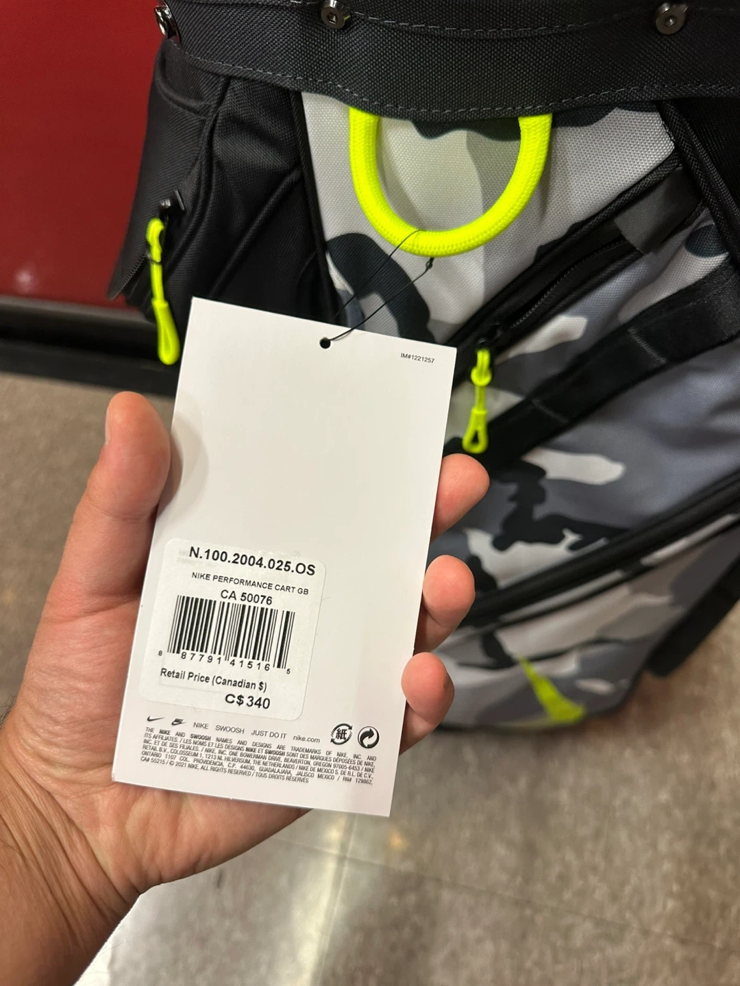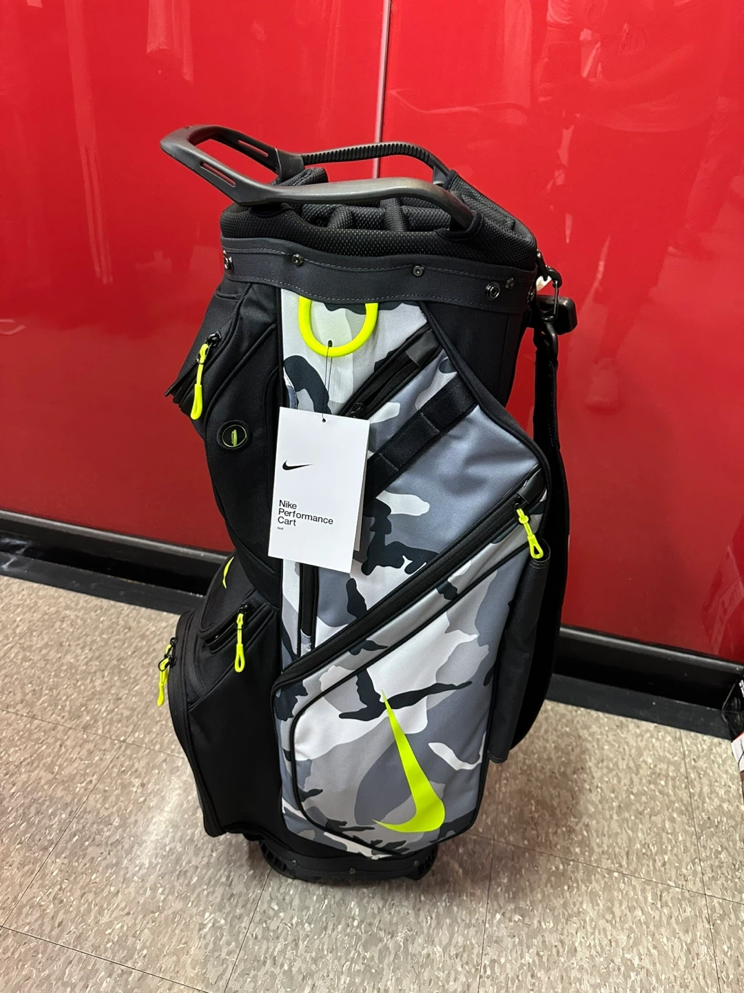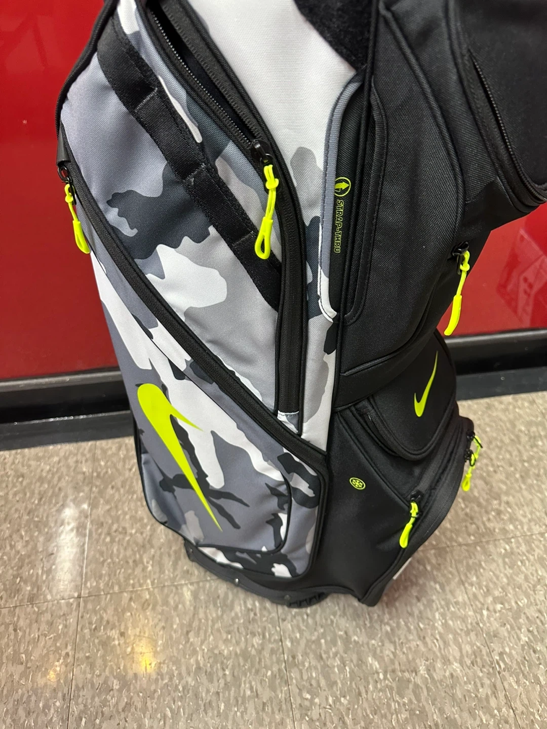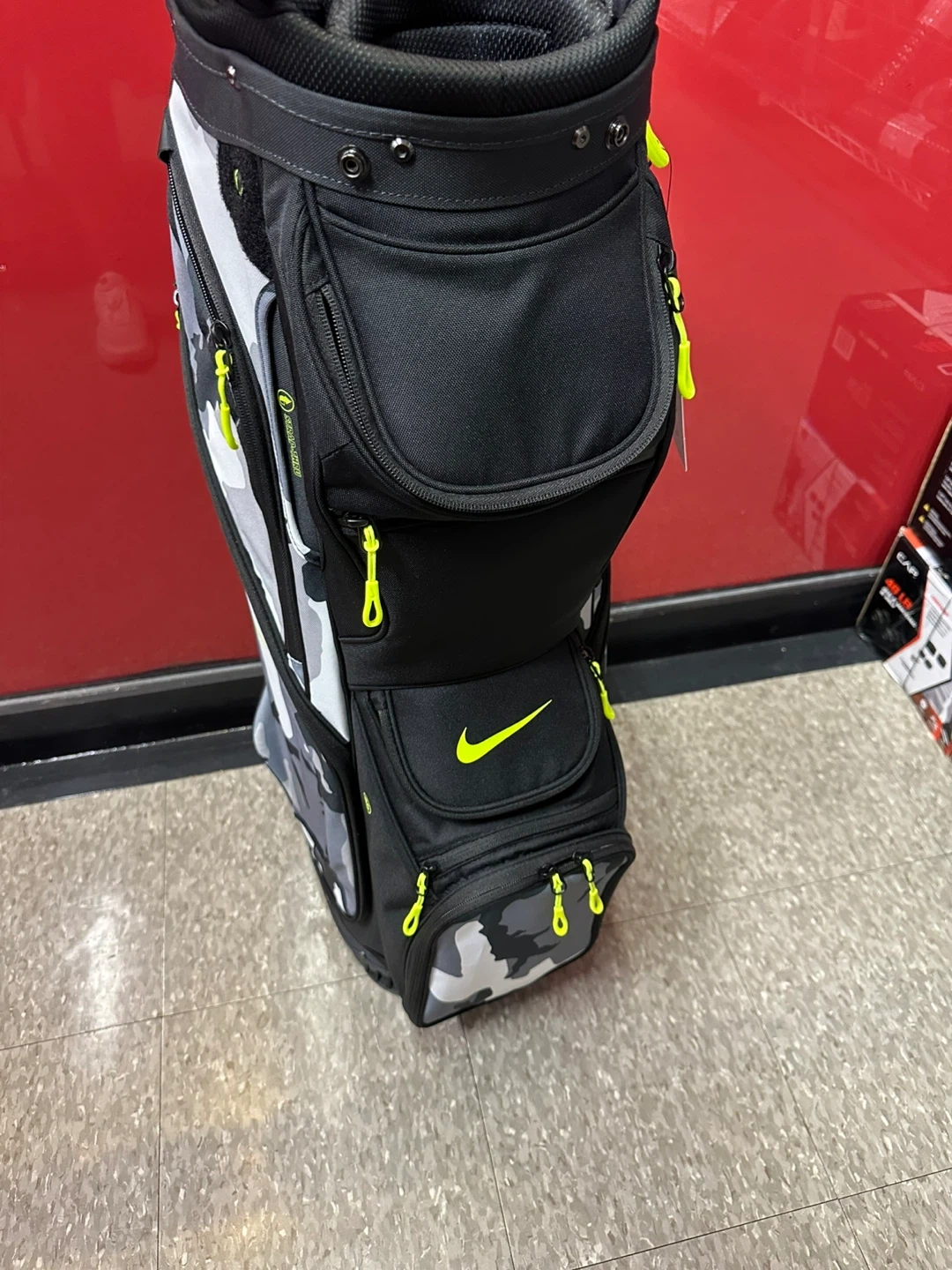 Selling a brand new Nike Performance Cart golf bag! It's black, grey, and white camo with neon yellow accents. Originally retails for $340 CAD Now is 250$