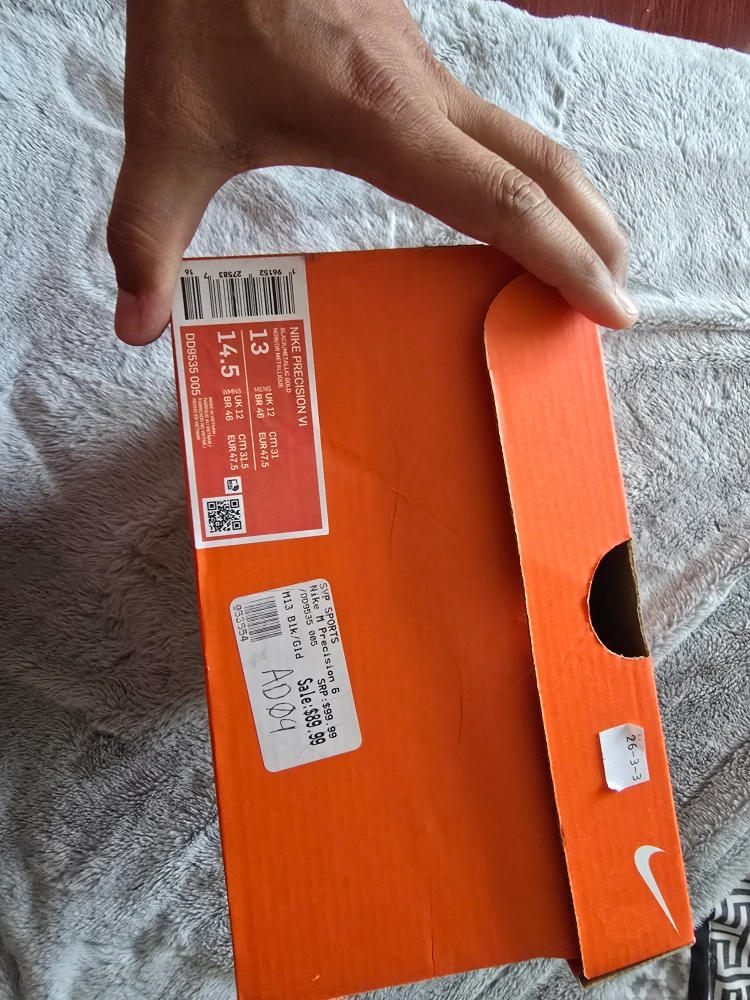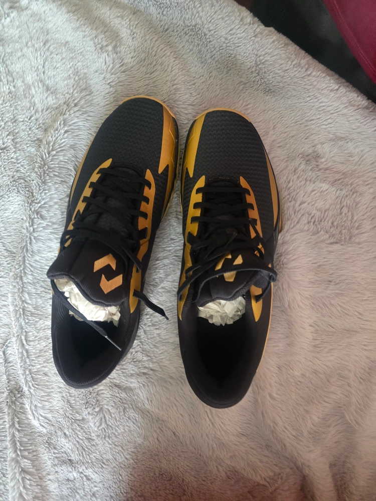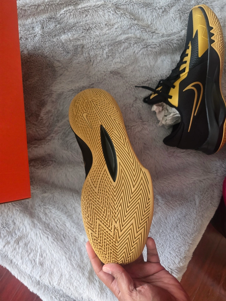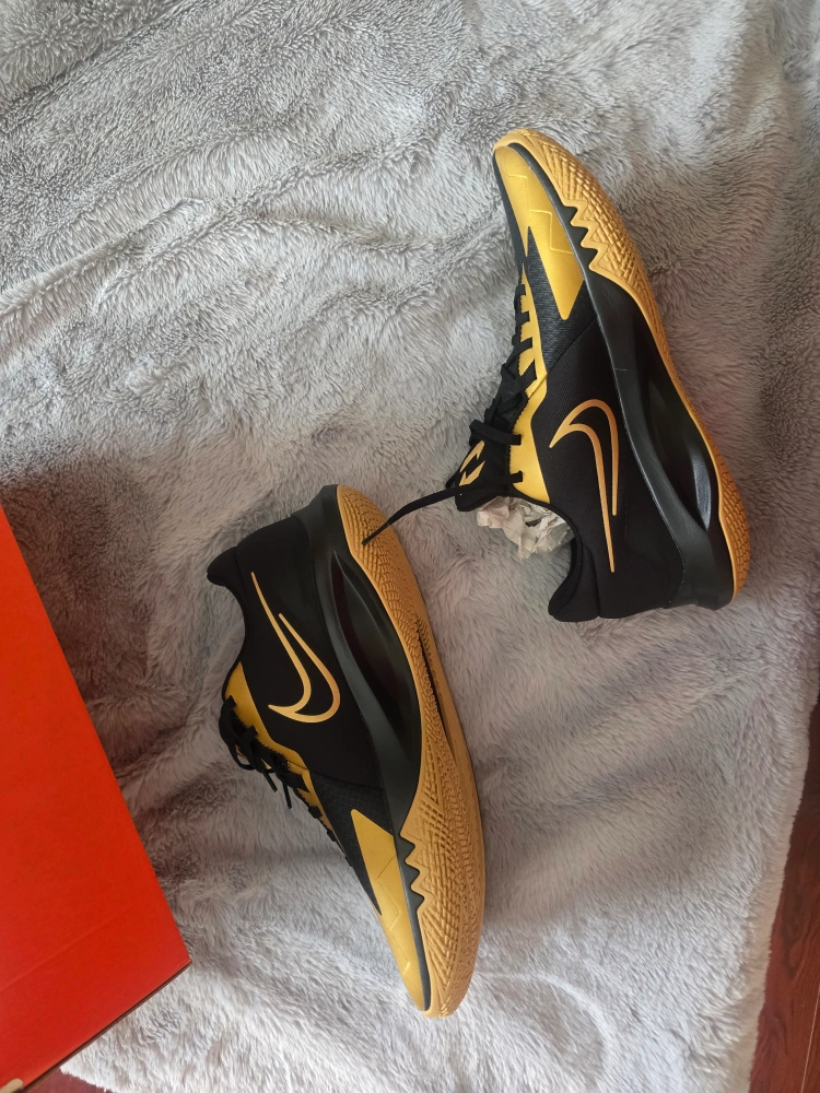 Selling a pair of Nike Precision VI basketball shoes in black and gold, size 13. They come with the original box. Retails for $89.99