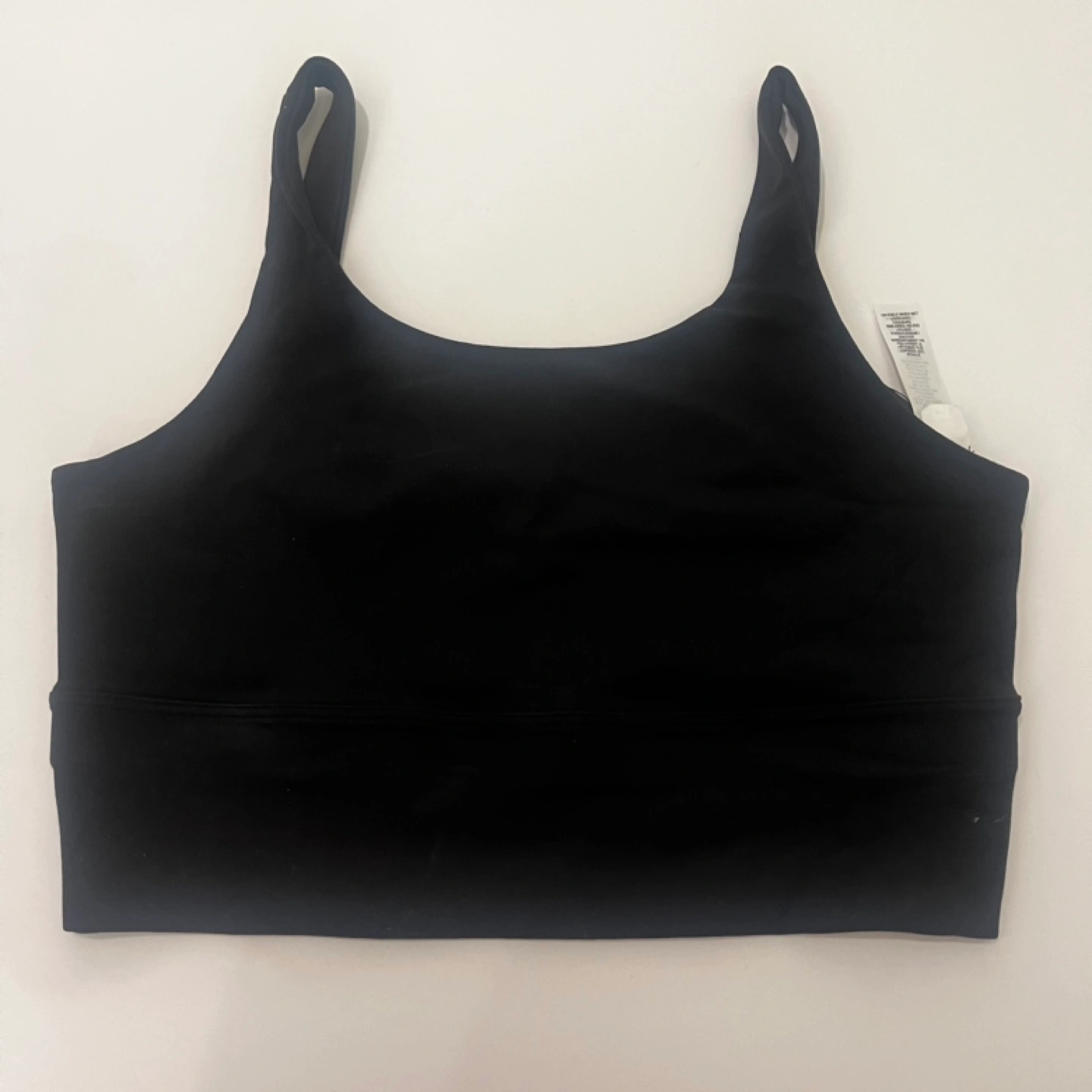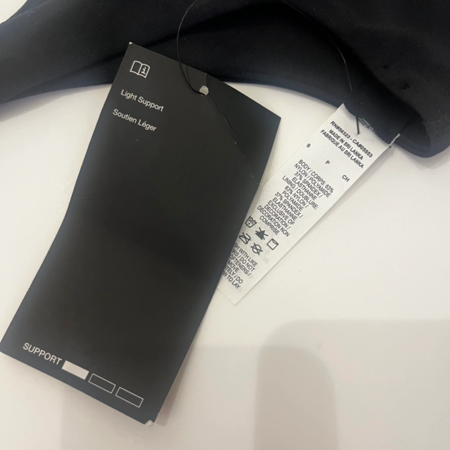 Black sports bra with a scoop neck and thin straps. Light support, size small. Pickup near eaton centre, at church and Shuter. Can also pickup near union station.