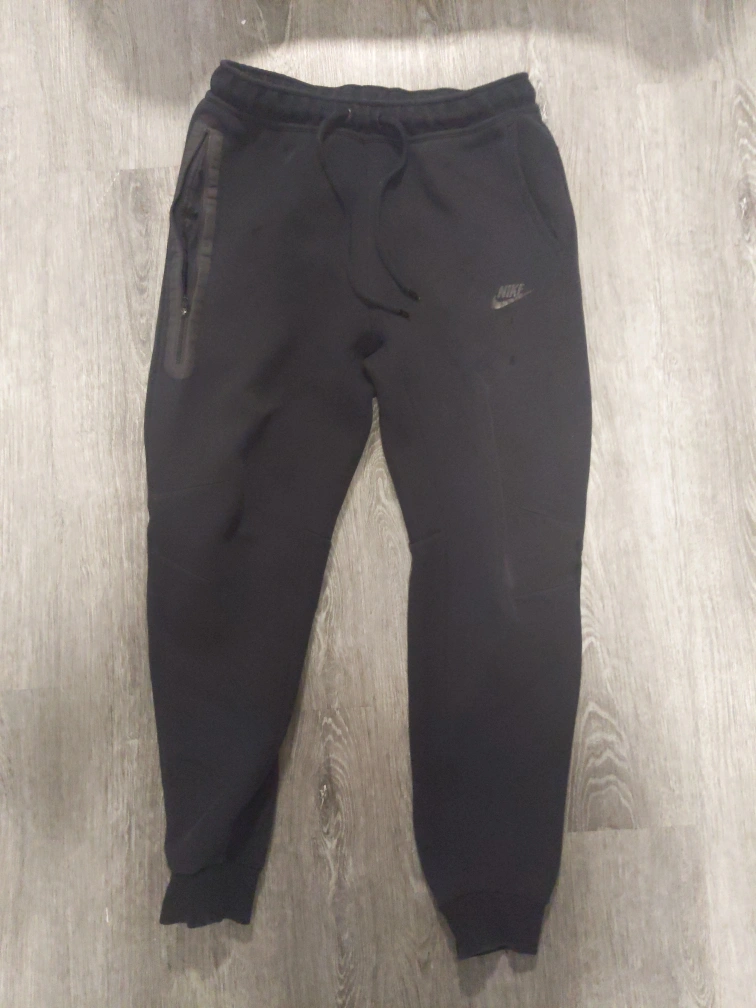 Selling a pair of Nike Tech Fleece joggers in black. They are in good condition and ready for a new home! Perfect for staying comfy while looking stylish.