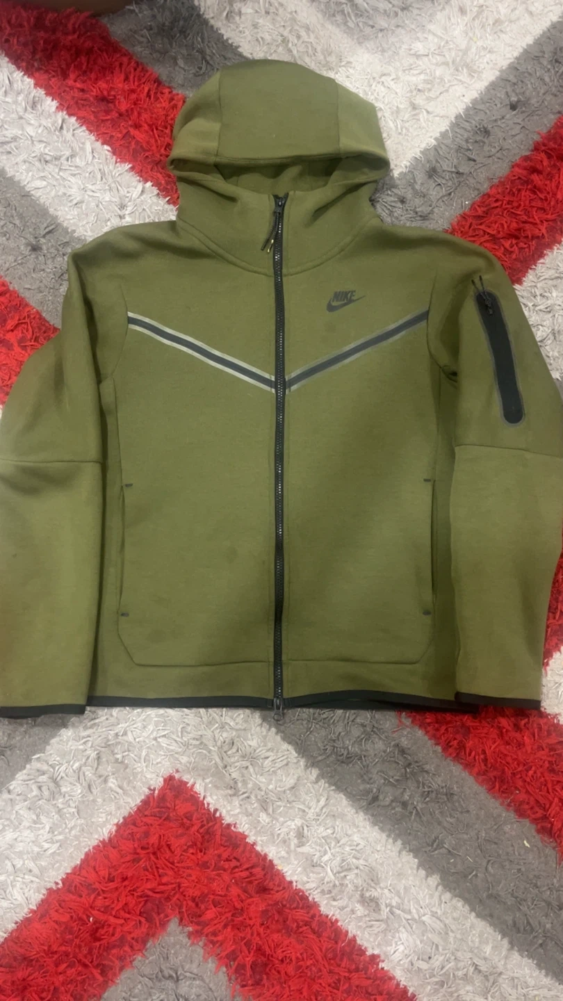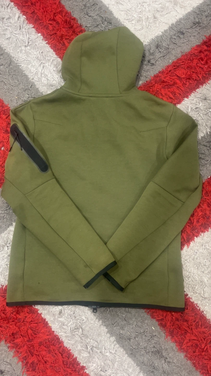 Selling a Nike Tech Fleece hoodie in an olive colour. It's in great condition and has a sleek design. Perfect for staying warm and stylish!