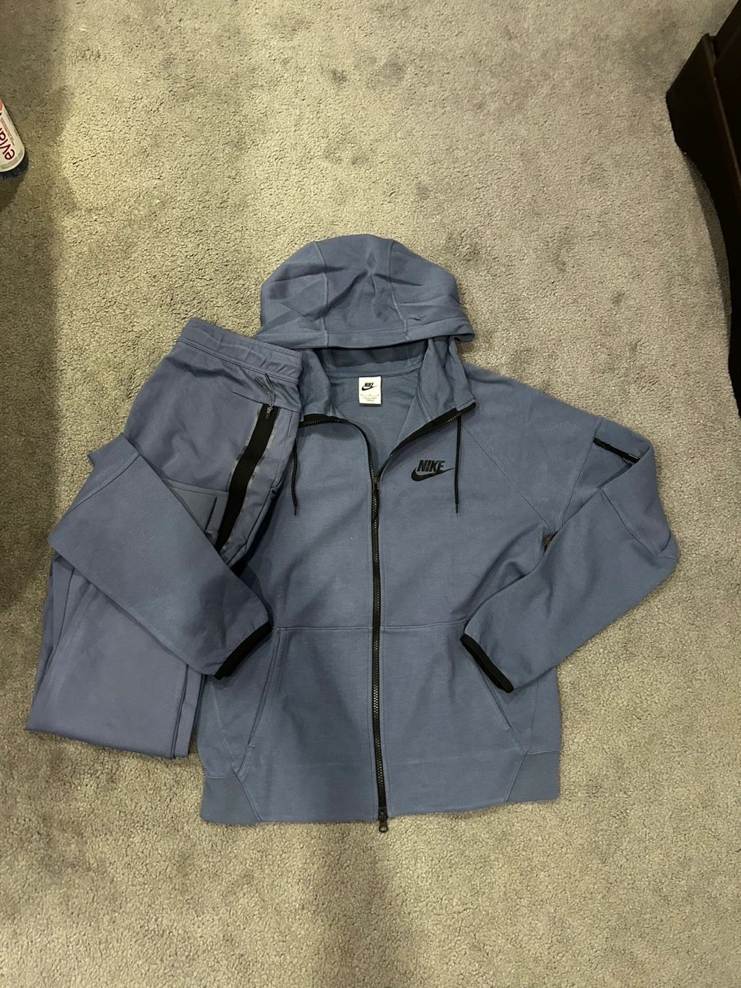 Selling a Nike Tech Fleece set, including the hoodie and pants! The set is in great condition and is a size medium. The colour is a really nice light blue/grey. Perfect for staying comfy and stylish! Used only once