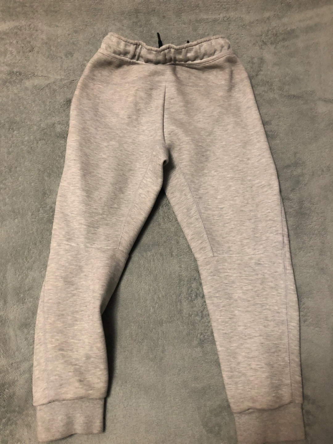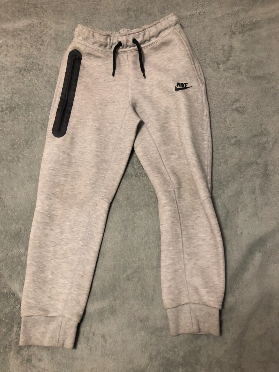 Selling a pair of Nike Tech Fleece pants in a light grey colour. They're a size small and in good condition. Perfect for lounging or hitting the gym!