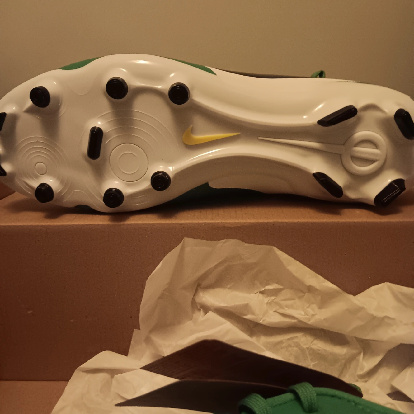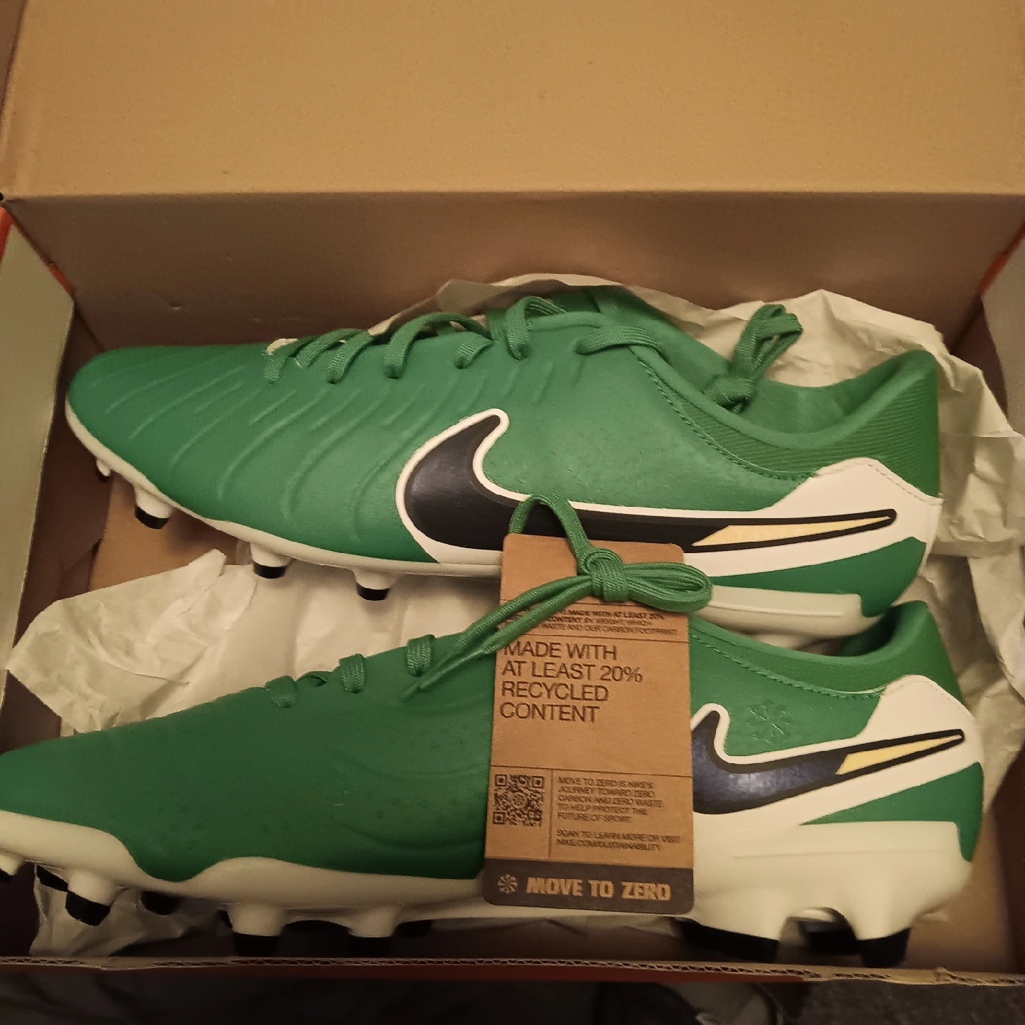 Selling a pair of Nike Tiempo Legend 9 Academy FG soccer cleats in green, size 11.5 These cleats are made with at least 20% recycled content. They're designed to help you move to zero waste and carbon emissions, securing a better future of sport. Comes with the original box