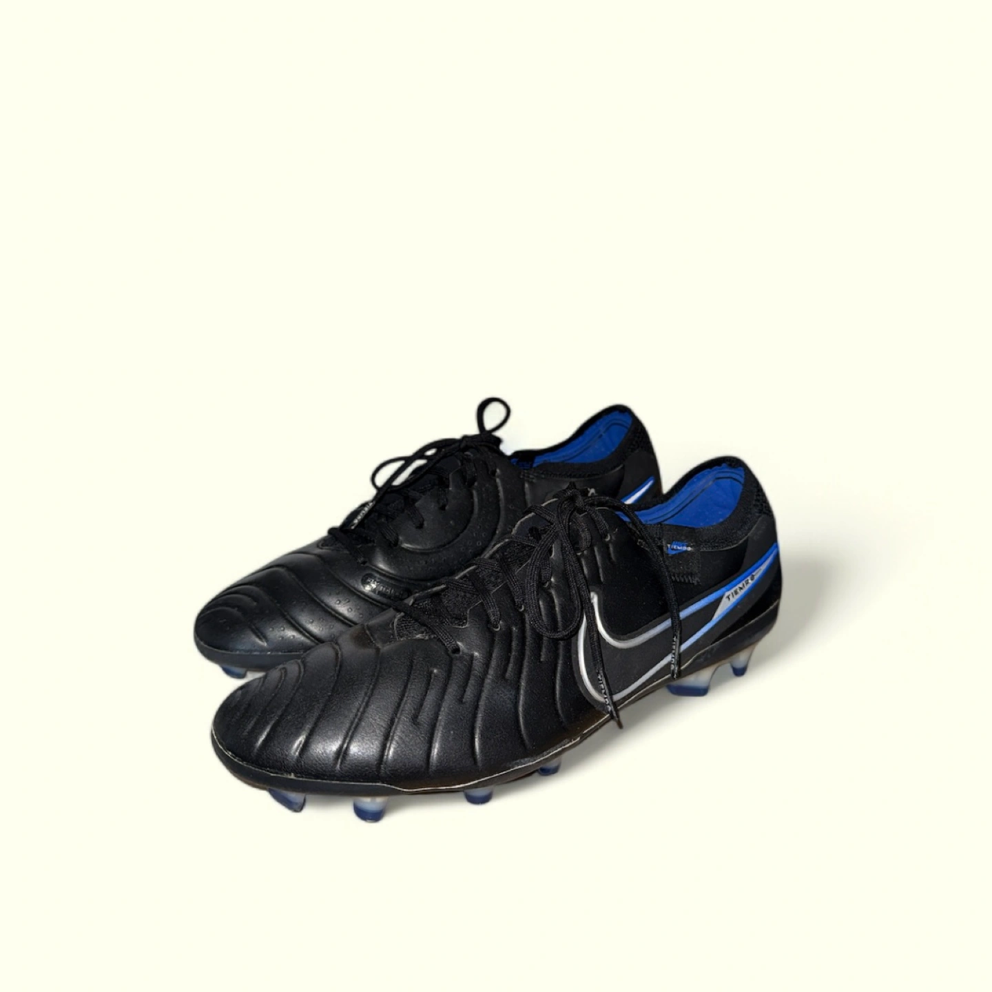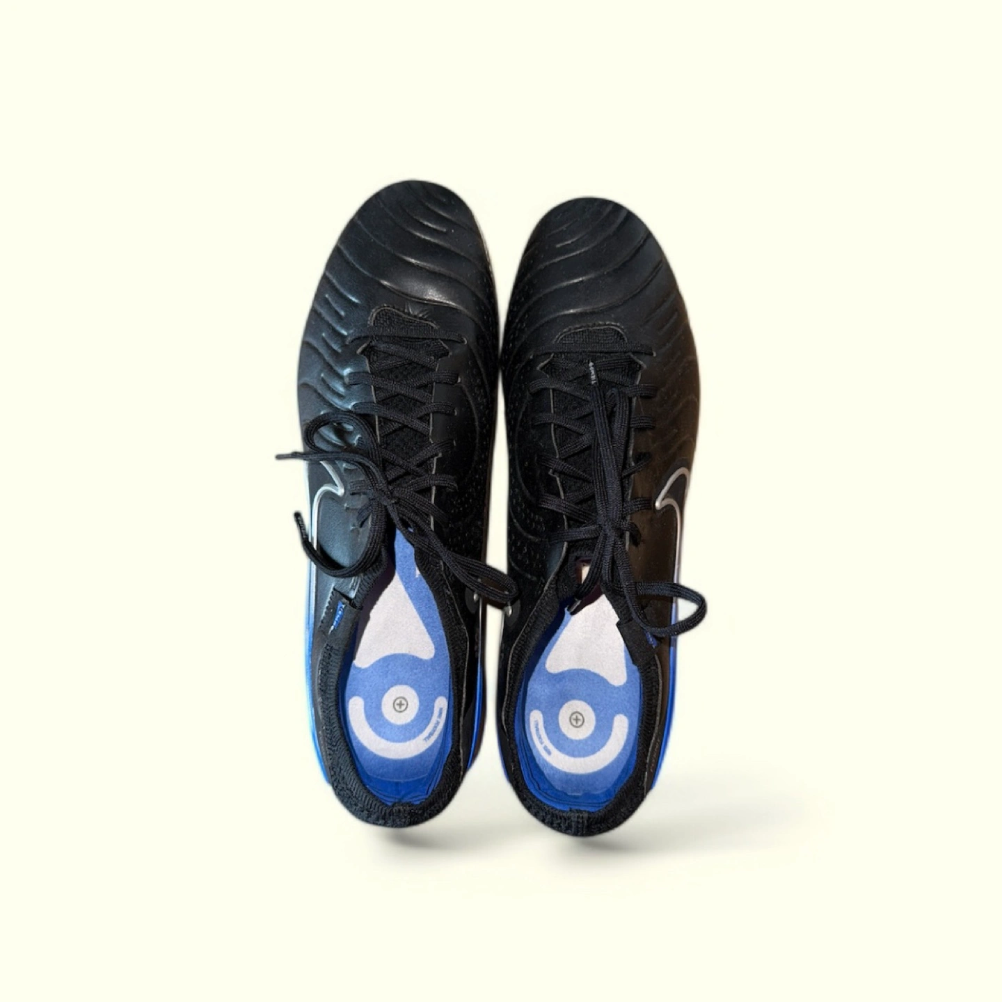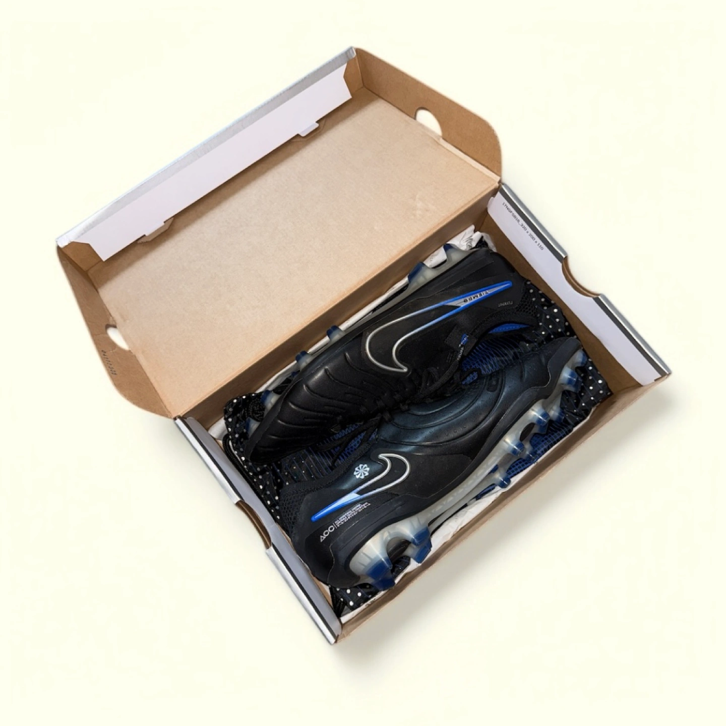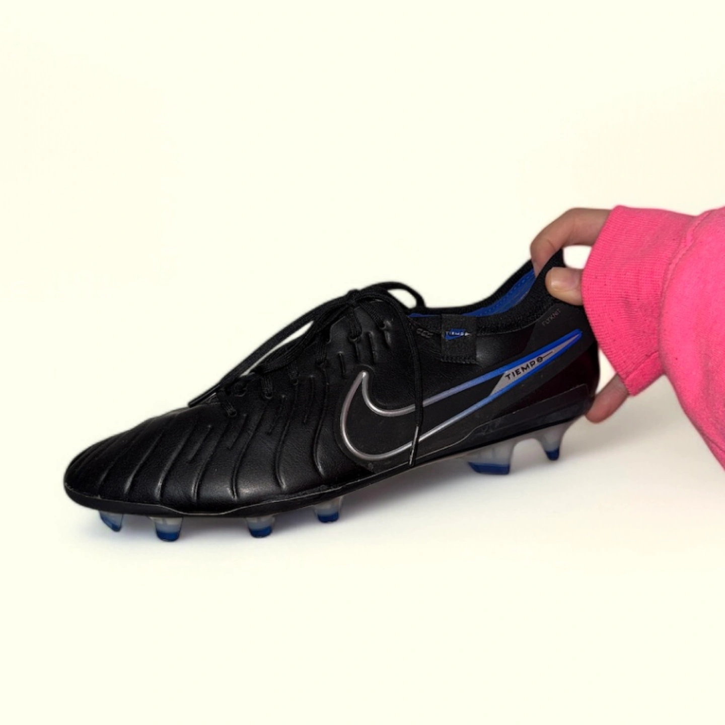 Nike Tiempo Legend IV Elite FG – Black/Blue – Size 10.5 US Selling a pair of Nike Tiempo Legend IV Elite FG soccer cleats in size 10.5 US (UK 9.5, EUR 44.5, CM 28.5, BR 42.5). These are made with premium K-leather for exceptional touch and comfort. They feature a carbon fiber soleplate for lightweight stability and firm ground (FG). Condition: Like New Includes: Original Tiempo drawstring bag Original box