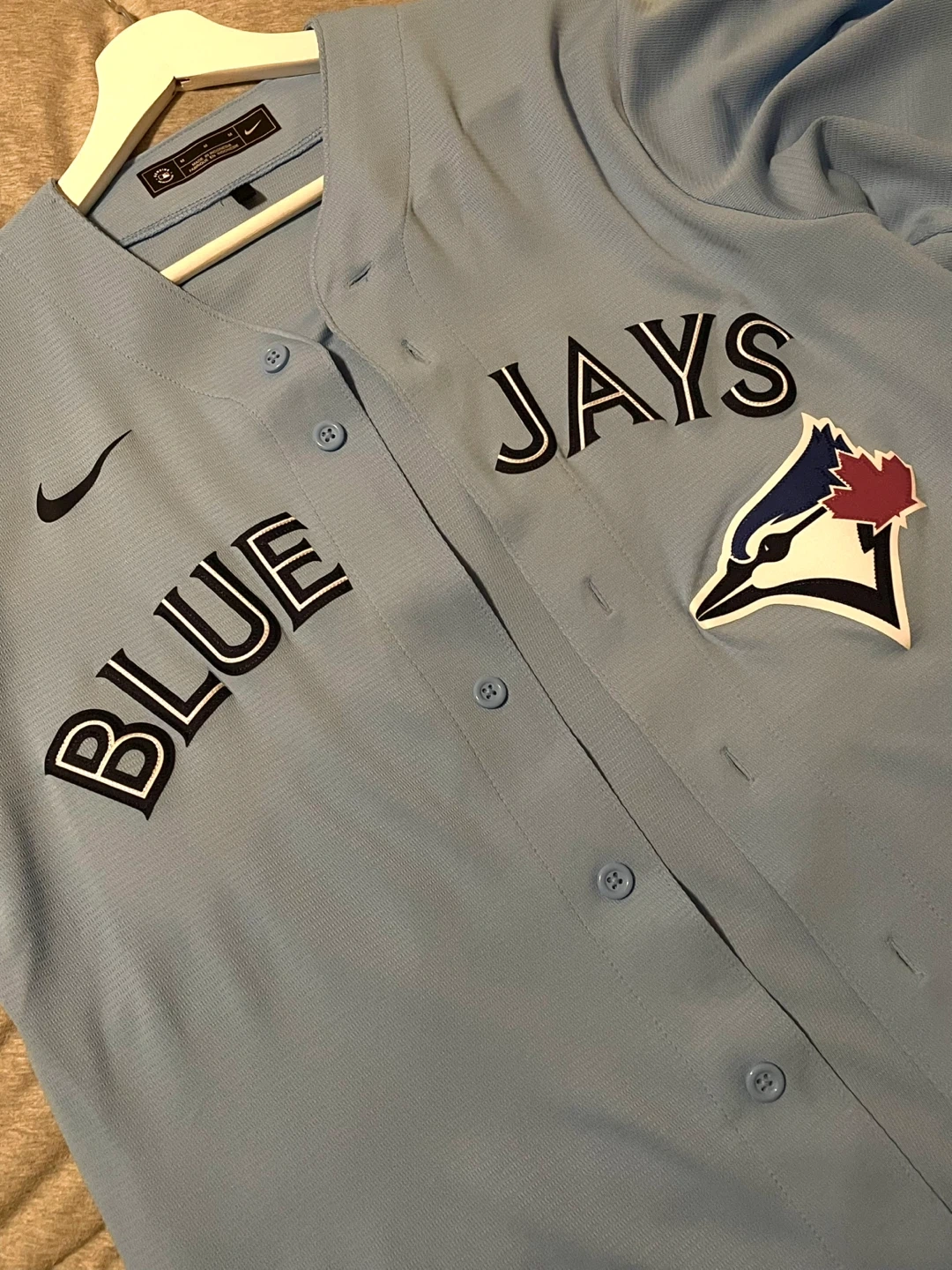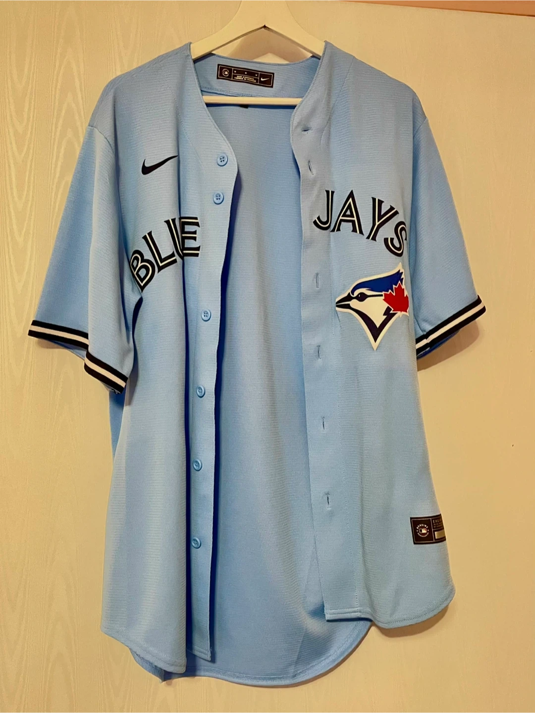 Nike Toronto Blue Jays baseball jersey. It's a light blue colour with the Blue Jays logo on the front. Unisex, worn only once, in perfect condition!