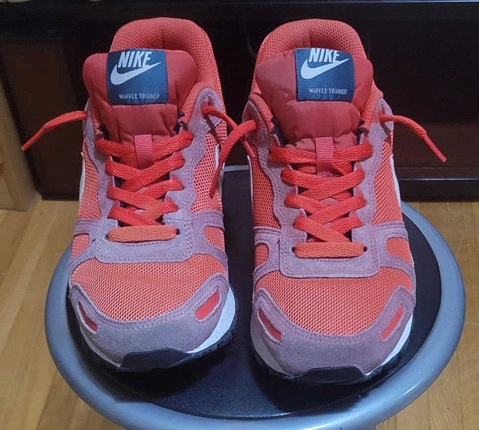 Selling a pair of Nike Waffle Trainer sneakers in red. They are in great shape and ready for a new home! Size is US 8.5.
