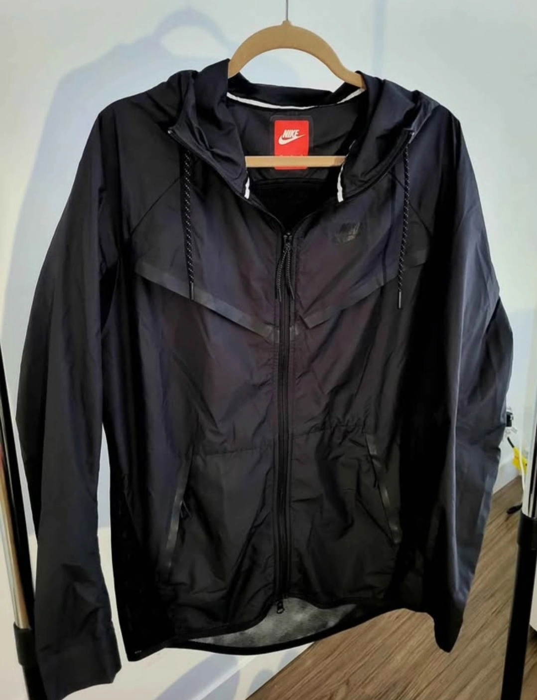 Selling a Nike Windrunner jacket in black, Mens medium. It's in great condition and ready for a new home! Perfect for layering or wearing on its own during those breezy days. The jacket features a hood and a full zip closure.