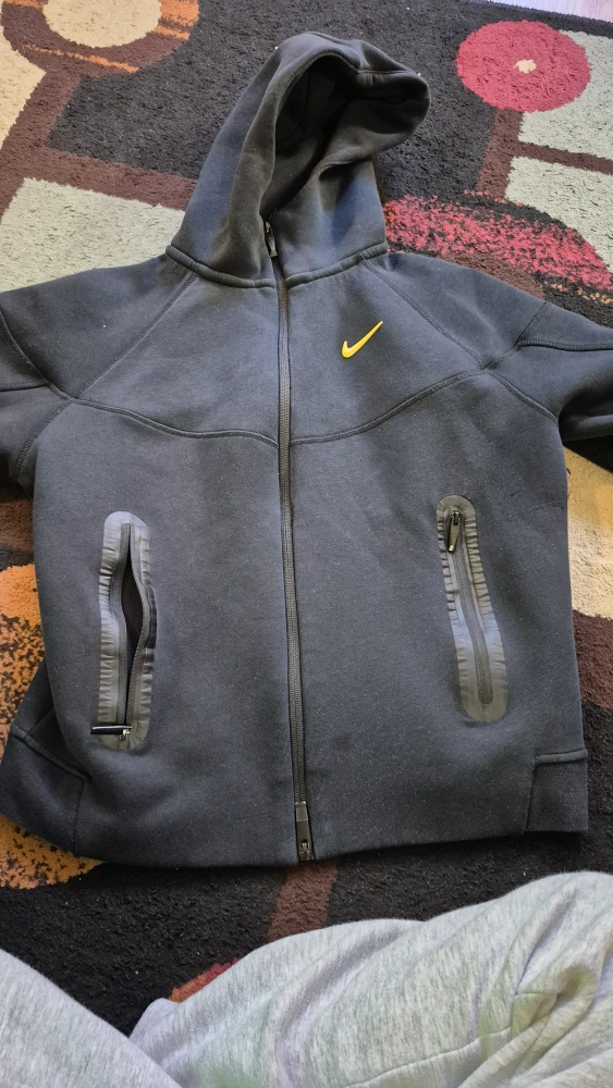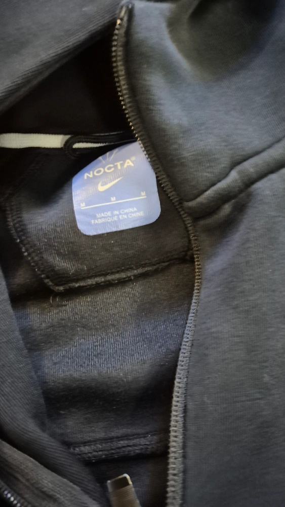 Selling a Nike x NOCTA hoodie in size medium. It's black with a yellow Nike swoosh and NOCTA branding on the zipper pull and tag. Great for staying cozy!