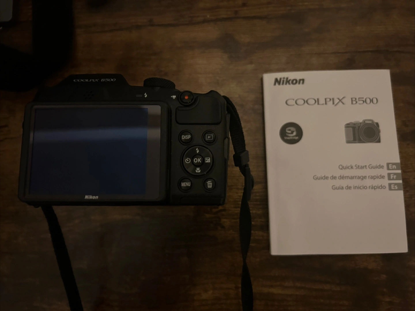 For sale: Nikon Coolpix B500 kit in excellent working condition, barely used. Included: • Nikon Coolpix B500 (40x optical zoom, 16 MP, Full HD video, Wi‑Fi/Bluetooth/NFC) • Protective camera cover • Hard carrying case with 5 zippered compartments, ideal for travel • USB charger block and USB-to-USB Mini (Type C/HDMI style) cable • 8 Panasonic Platinum AA batteries (good for stills; video works better with rechargeable Ni‑MH batteries) • Lexar Professional 128 GB SD card — lots of storage for photos and videos • SnapBridge phone connection via Wi‑Fi/Bluetooth/NFC Condition: • Clean, lightly used, no cosmetic damage • Works perfectly for photos; videos last longer with rechargeable batteries Ideal for: • Travel, wildlife, sports, landscapes, family events • Anyone wanting strong zoom and easy phone sharing Quick Specs: • 16 MP CMOS sensor, 40x optical zoom, optical stabilization • 1080p Full HD video with stereo sound • Wi‑Fi, NFC, and Bluetooth for smartphone connection Nikon Coolpix B500, Nikon B500 kit, Camera with case, Camera with cover, Camera bundle, Travel camera, 40x zoom, Bluetooth Wi‑Fi camera, 128GB SD card, camera sale, Kit with charger and cable, camera for sale, camera for sale ontario