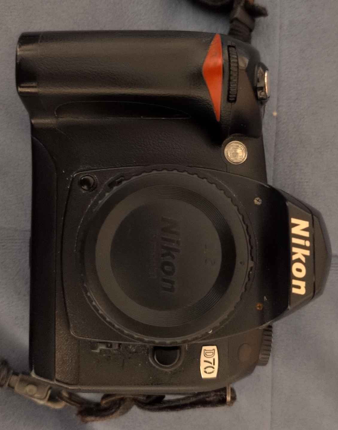 Selling a used Nikon D70 digital camera body only. It comes with an LCD USB charger and 2 camera batteries. Great for photography enthusiasts! it works perfectly.