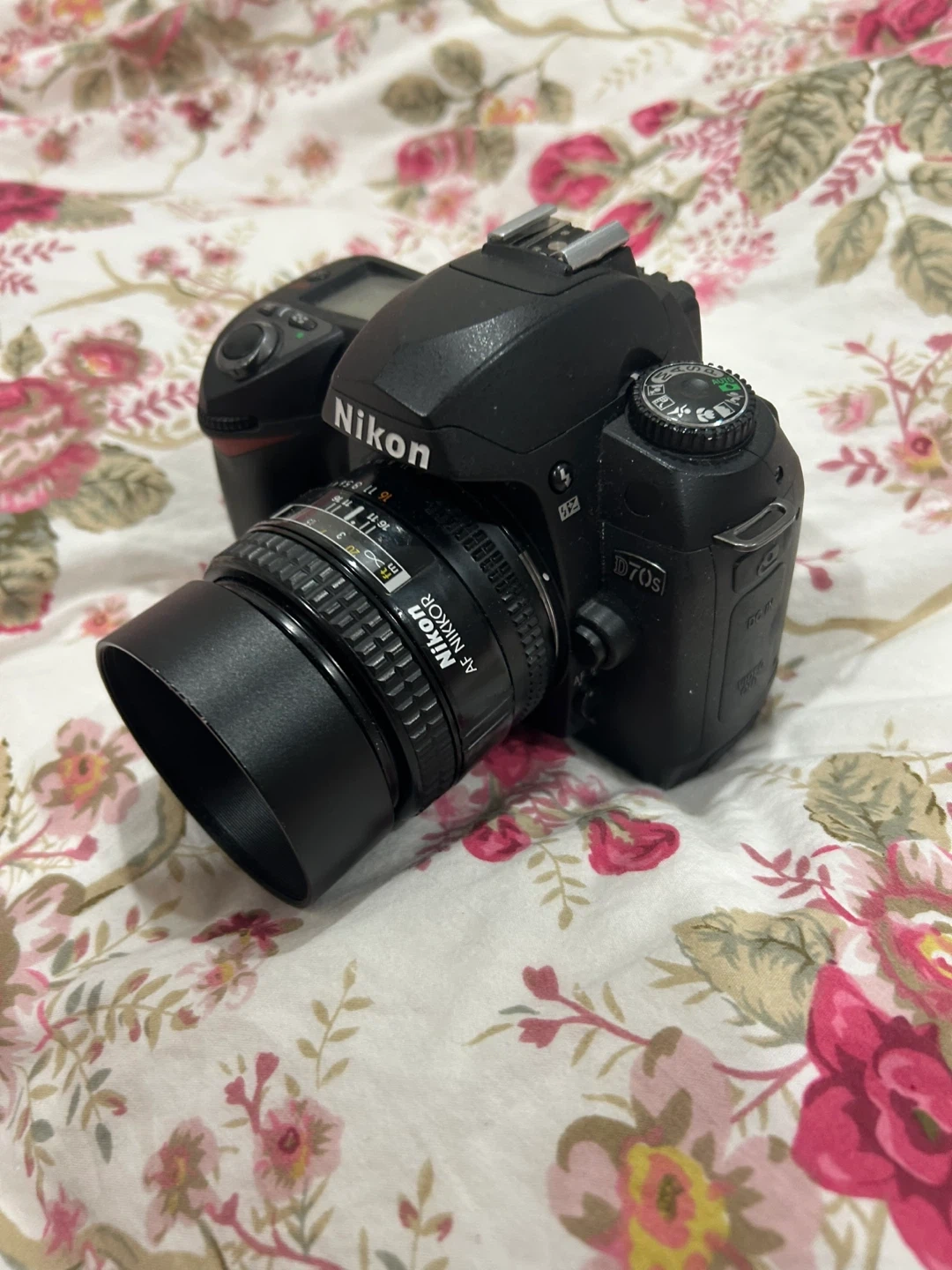 Selling a Nikon D70s digital camera paired with an AF Nikkor 50mm lens. It's a great setup for photography enthusiasts. The camera body is in good condition and the lens is clear and ready to capture some amazing shots!