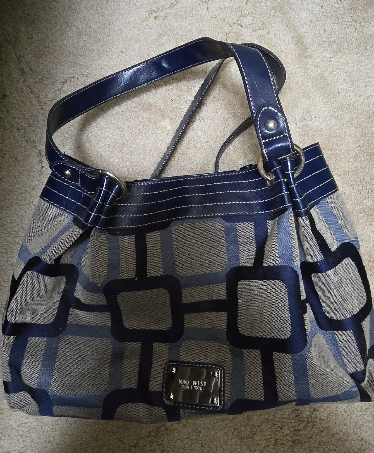 Nine West bag in a stylish blue and grey pattern! It's ready for a new home!