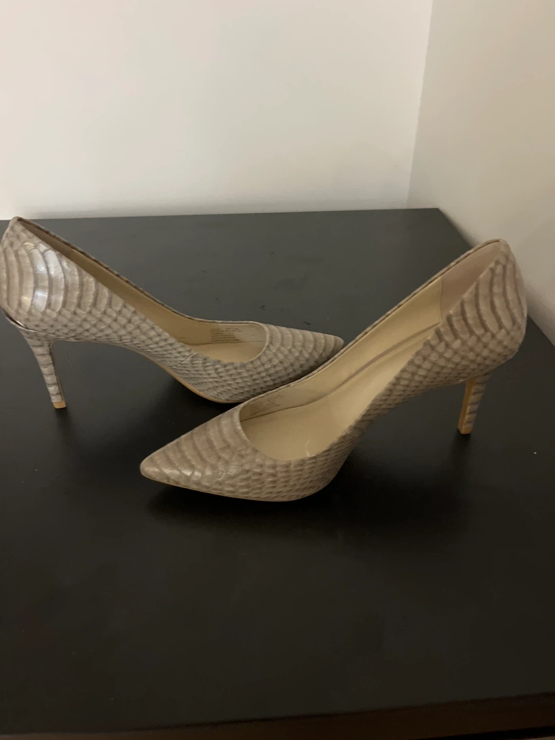 These are a pair of Calvin Klein heels with a snakeskin print. They are perfect for a night out or a special occasion! They are in great condition.