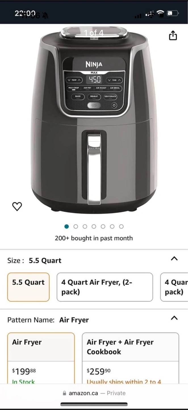 Selling a Ninja Air Fryer Max XL, model AF161. It's a 5.5 quart capacity air fryer in gray. This comes with the box. Originally bought for $199.88. Great for making crispy fries or roasting veggies!