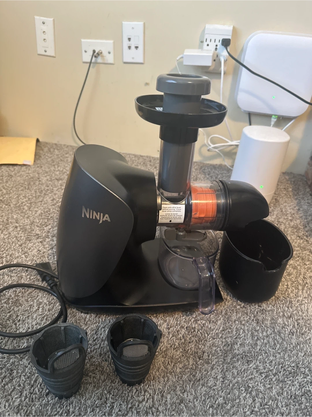 Selling a Ninja Cold Press Juicer in great condition! It's perfect for making healthy and delicious juices at home. This juicer is easy to use and clean, making it a convenient addition to your kitchen. It comes with all the original components shown in the pictures.