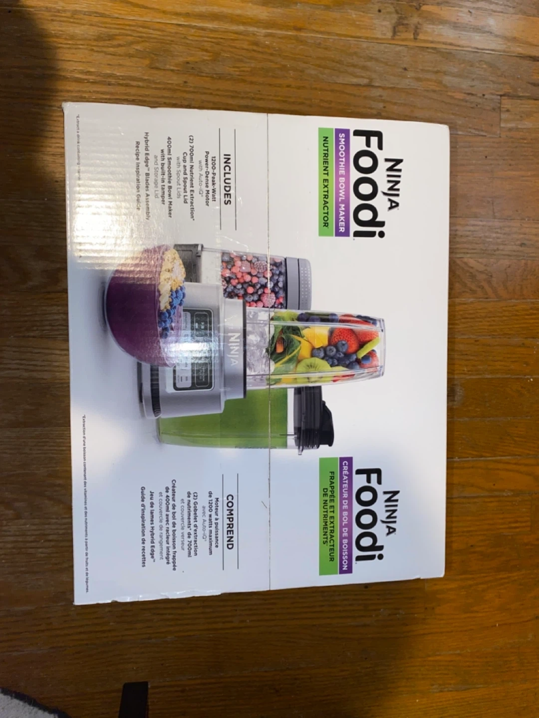 Selling a Ninja Foodi Smoothie Bowl Maker and Nutrient Extractor! It's in great condition and ready to make some delicious smoothies and bowls. This powerful machine has a 1200-watt motor and never stalls. It includes a smoothie bowl maker and nutrient extractor cup. Perfect for household use!