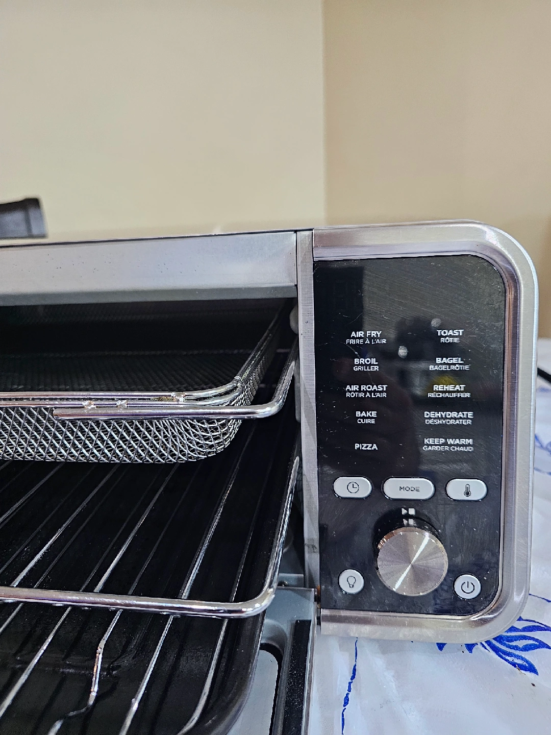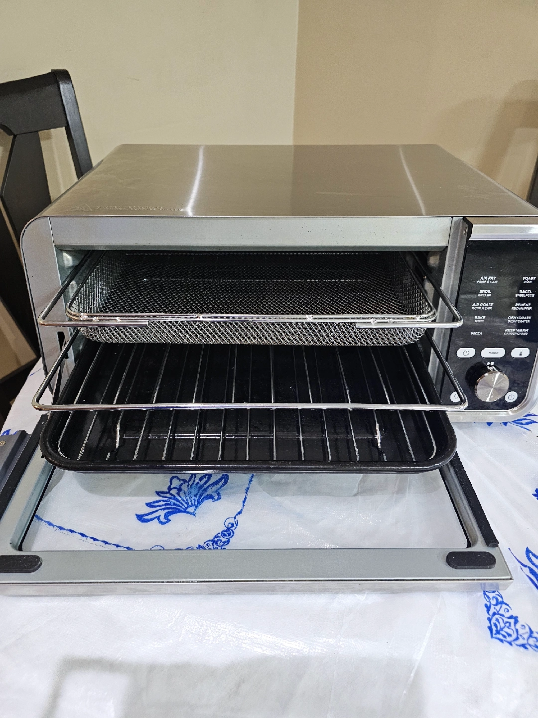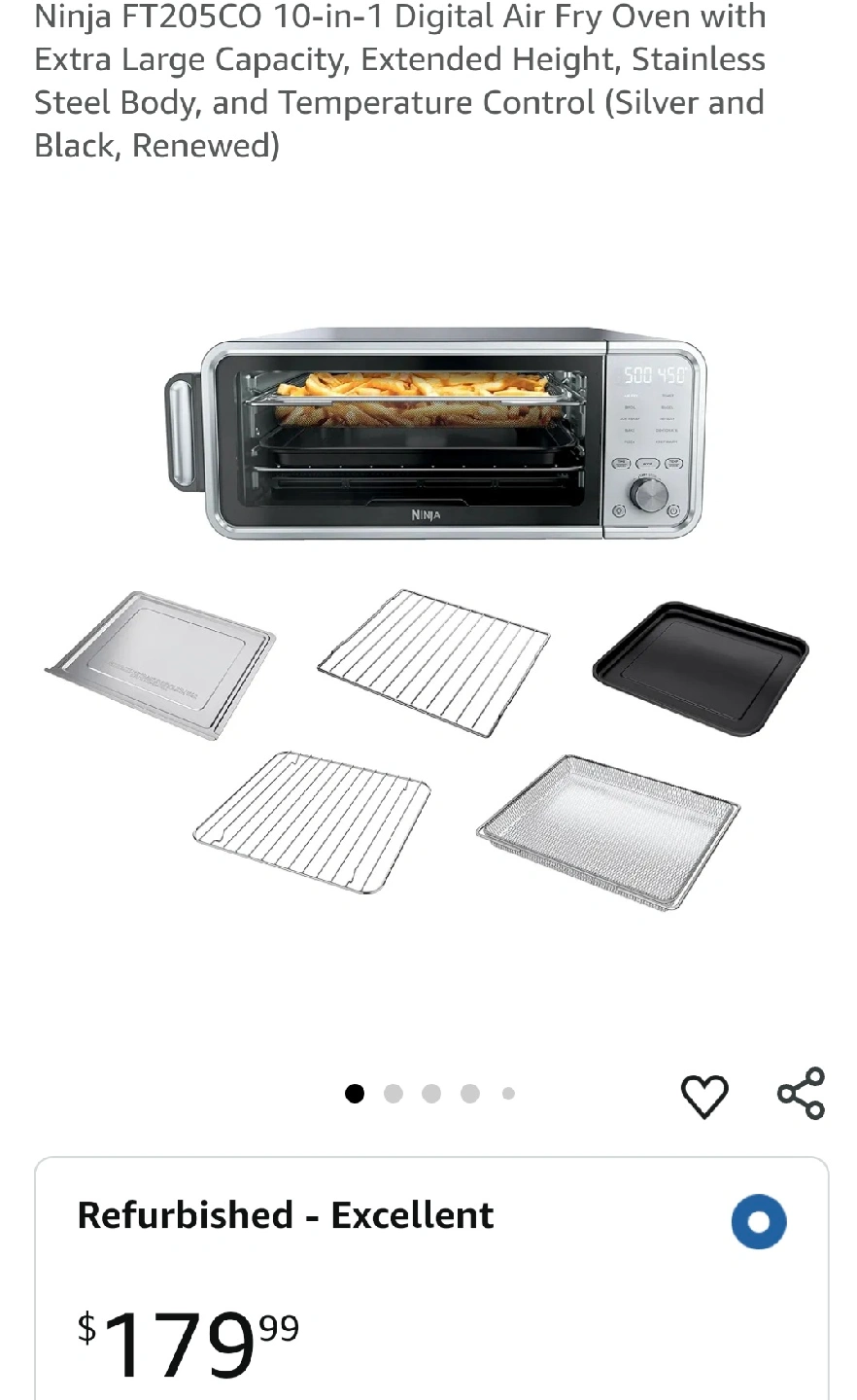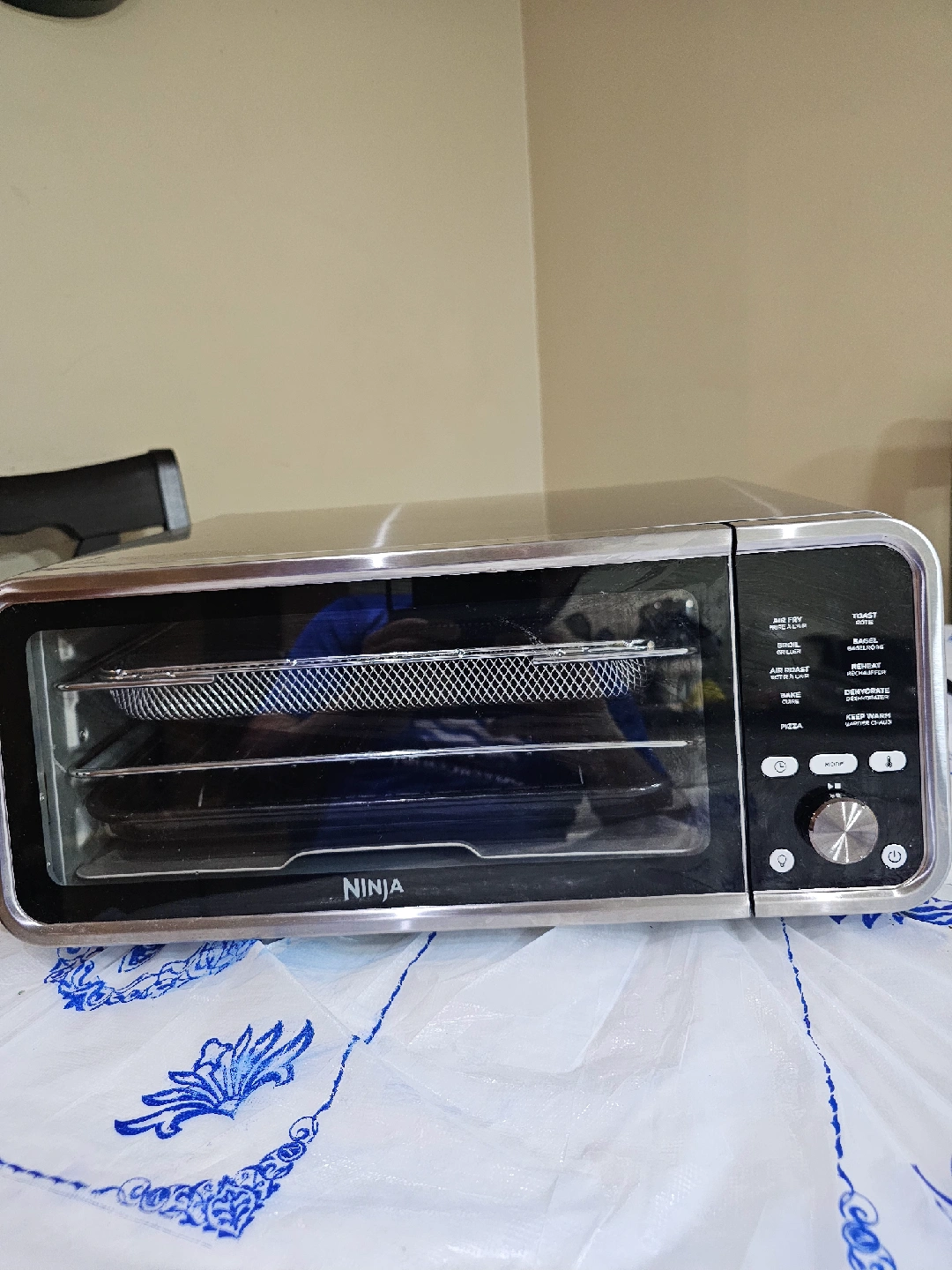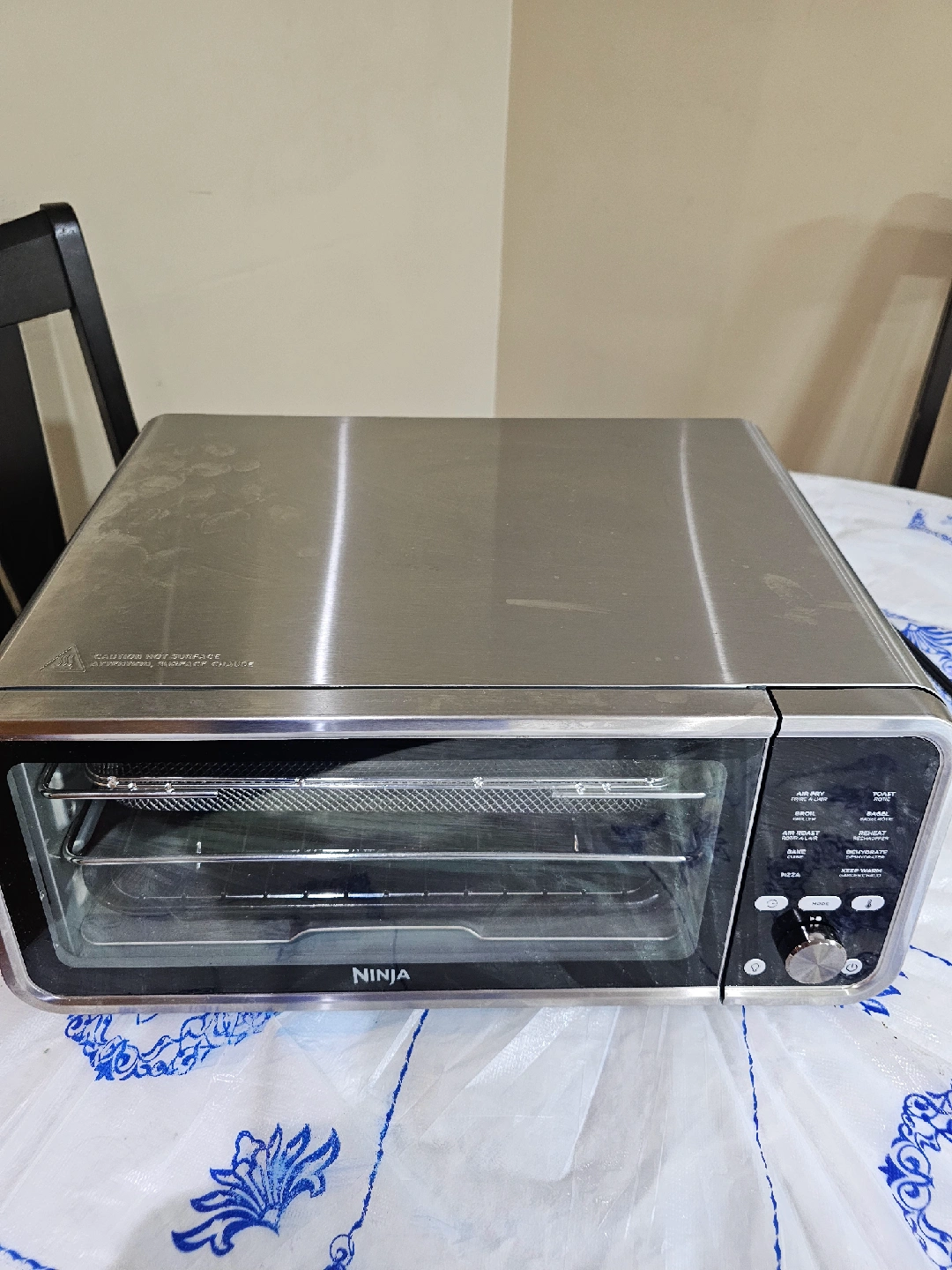 Selling a Ninja FT205CO 10-in-1 digital air fry oven. It has an extra large capacity and extended height. The body is stainless steel, and it comes in silver and black. It also has temperature control. Originally bought for $179.99