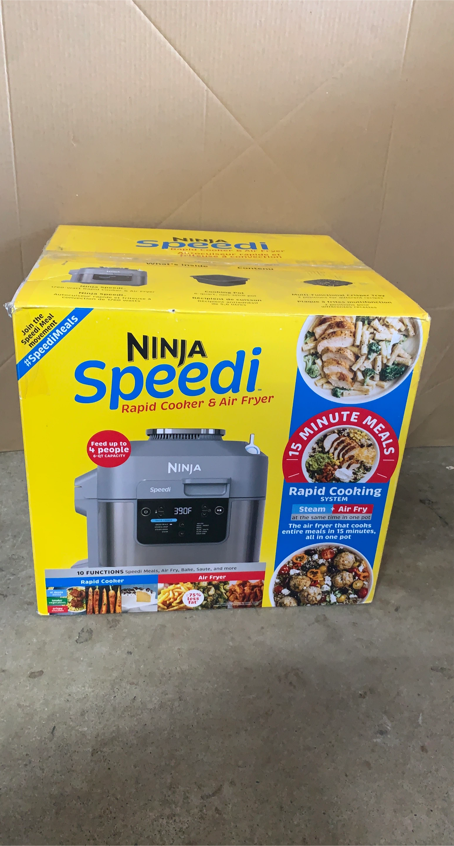 I'm selling a brand new Ninja Speedi Rapid Cooker & Air Fryer! It's still in the box and ready to go to a new home. This cooker can feed up to 4 people with its 6-quart capacity. It has 10 functions including Speedi Meals, Air Fry, Bake, Saute, and more. It cooks entire meals in 15 minutes using the Rapid Cooking System with Steam + Air Fry, all in one pot!
