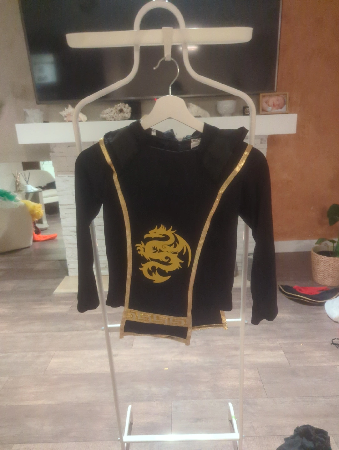 Selling a Ninjago costume in black and gold. Includes the top, pants, and head covering. Perfect for dress-up or Halloween!