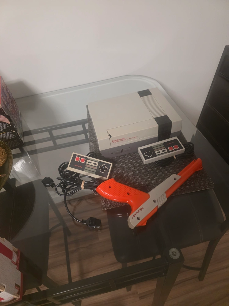 Selling a classic Nintendo Entertainment System! Includes the console, two controllers, and the Nintendo Zapper light gun. Perfect for reliving those retro gaming moments!
