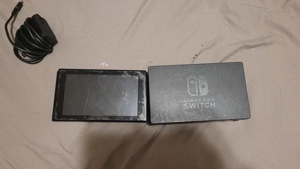 Selling a Nintendo Switch console along with its dock. It comes with the necessary charger. Please note that the screen has some scratches. Vent on top works but plastic cover is broken off of the vent. work perfectly. NO GAMES AND NO JOYCONS. OLDEST MODEL.