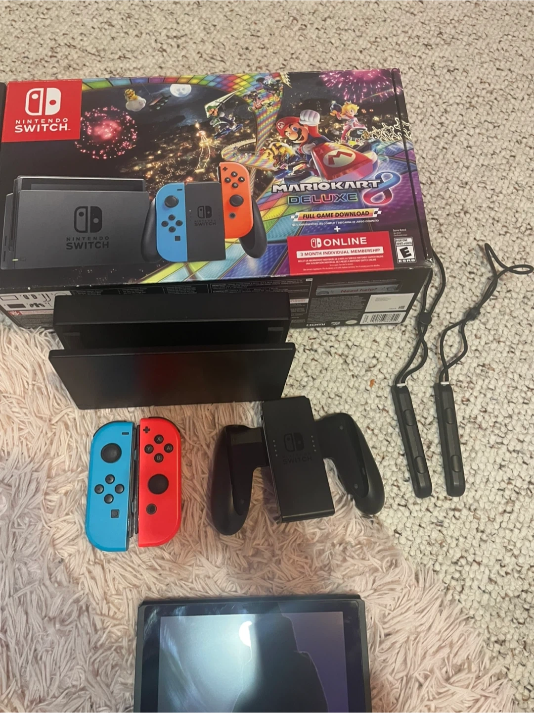 Perfectly working Nintendo Switch fully functional with no issues, Comes with everything seen in the photos (swipe) except for the charger to it. I can send a video of me using the nintendo for proof that it’s fully functional Asking 250$ OBO Pick up please