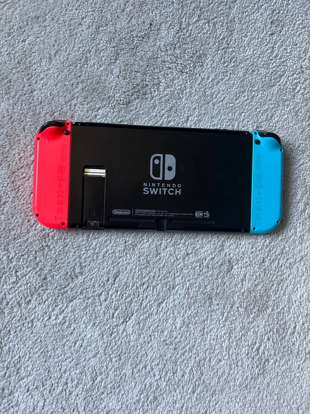 Selling my used Nintendo Switch, complete with its vibrant red and blue Joy-Cons. It's in good condition and ready for countless hours of gaming fun. Also comes with Super Mario Maker 2. This console has been well-loved and is looking for a new home where it can bring joy to another gamer! * Includes original dock and power adapter. * Comes with Super Mario Maker 2 * In decent condition (few scratches and missing stand)