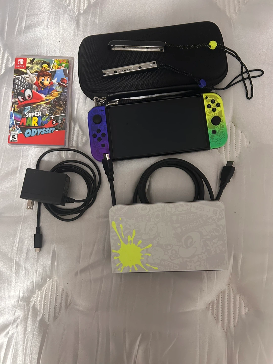 Selling a Nintendo Switch OLED Splatoon 3 Edition! It comes with all the accessories you see in the photos, including the dock, charger, and a game.