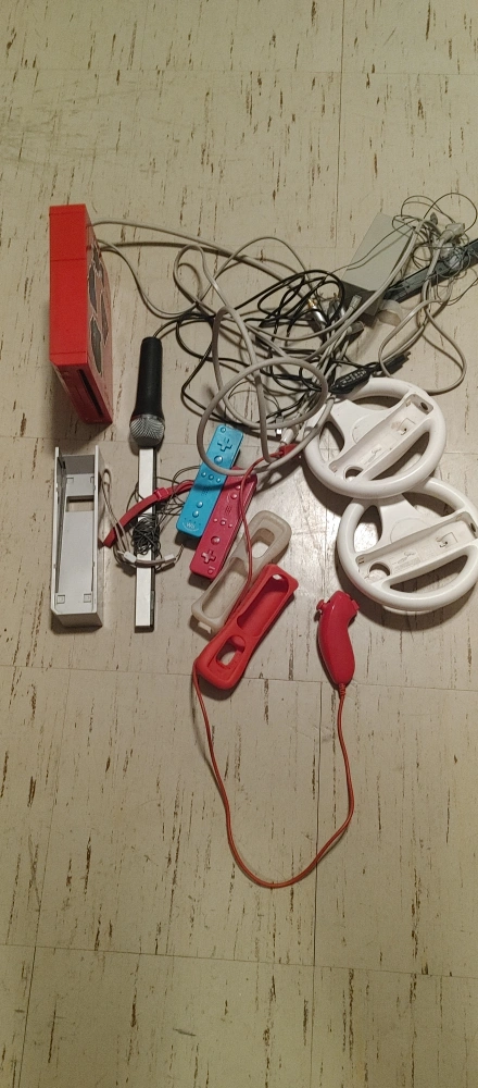 Selling a Nintendo Wii bundle, including the console (red edition!), controllers, steering wheels, microphone, and all the necessary cables to get you gaming. Hours of fun for the whole family!