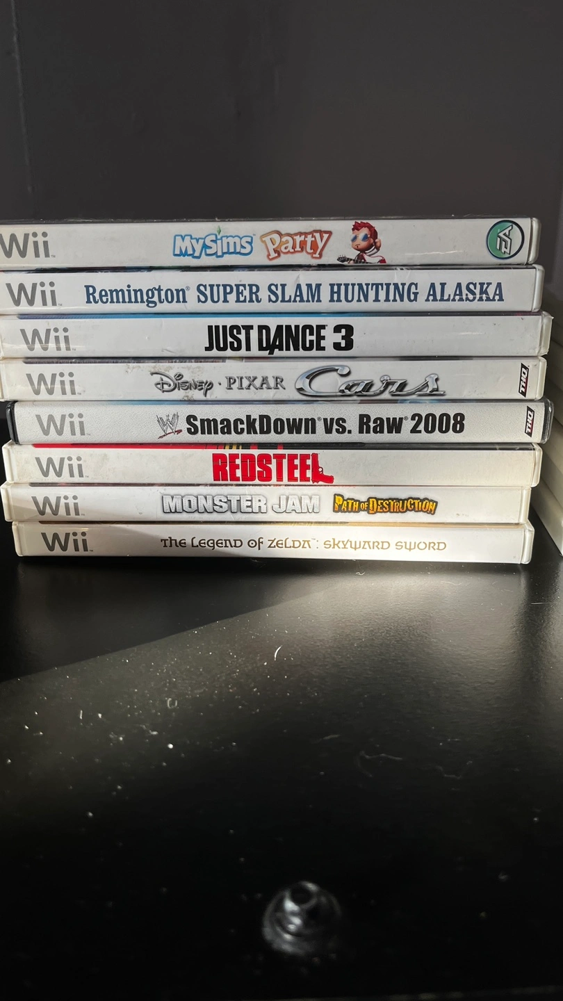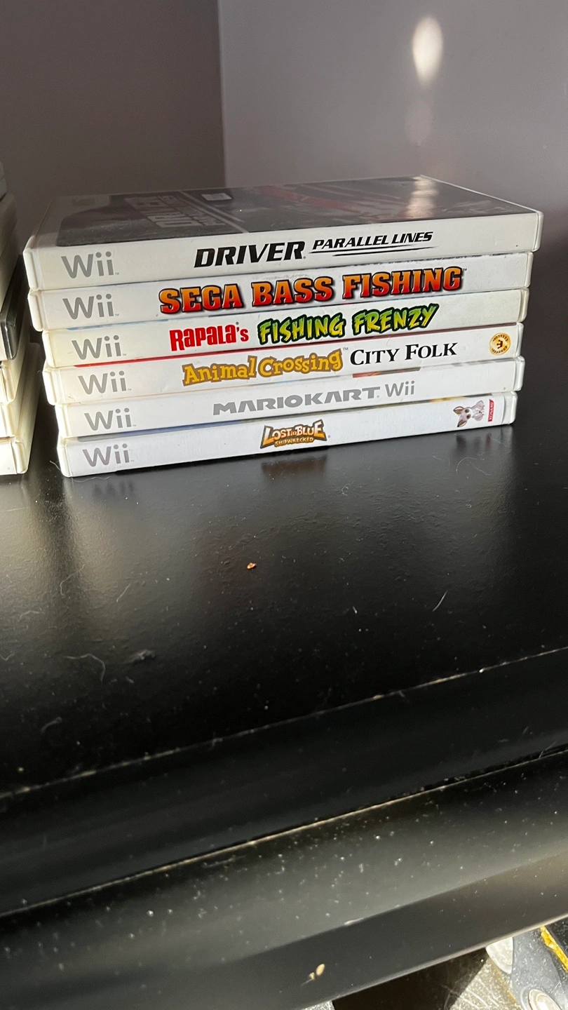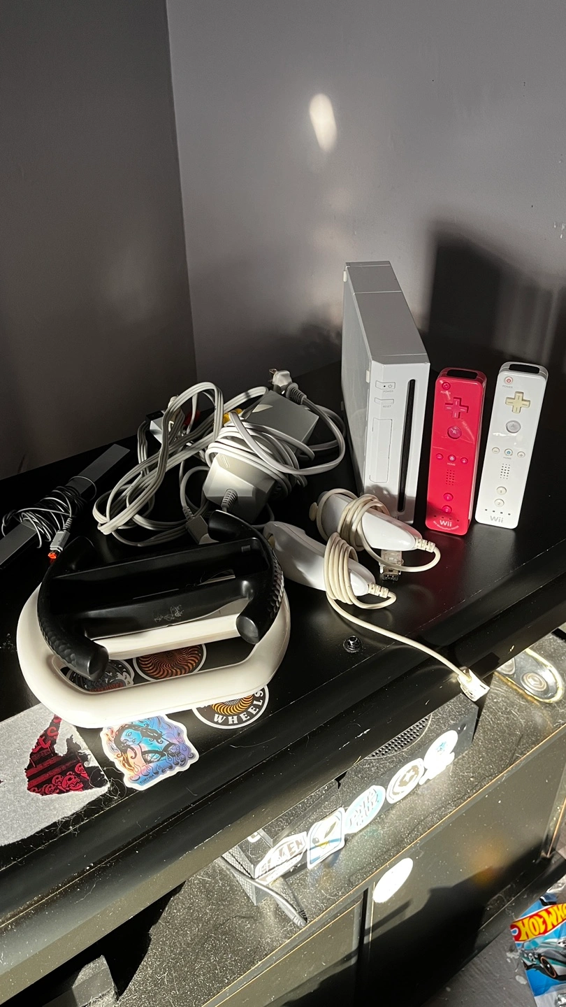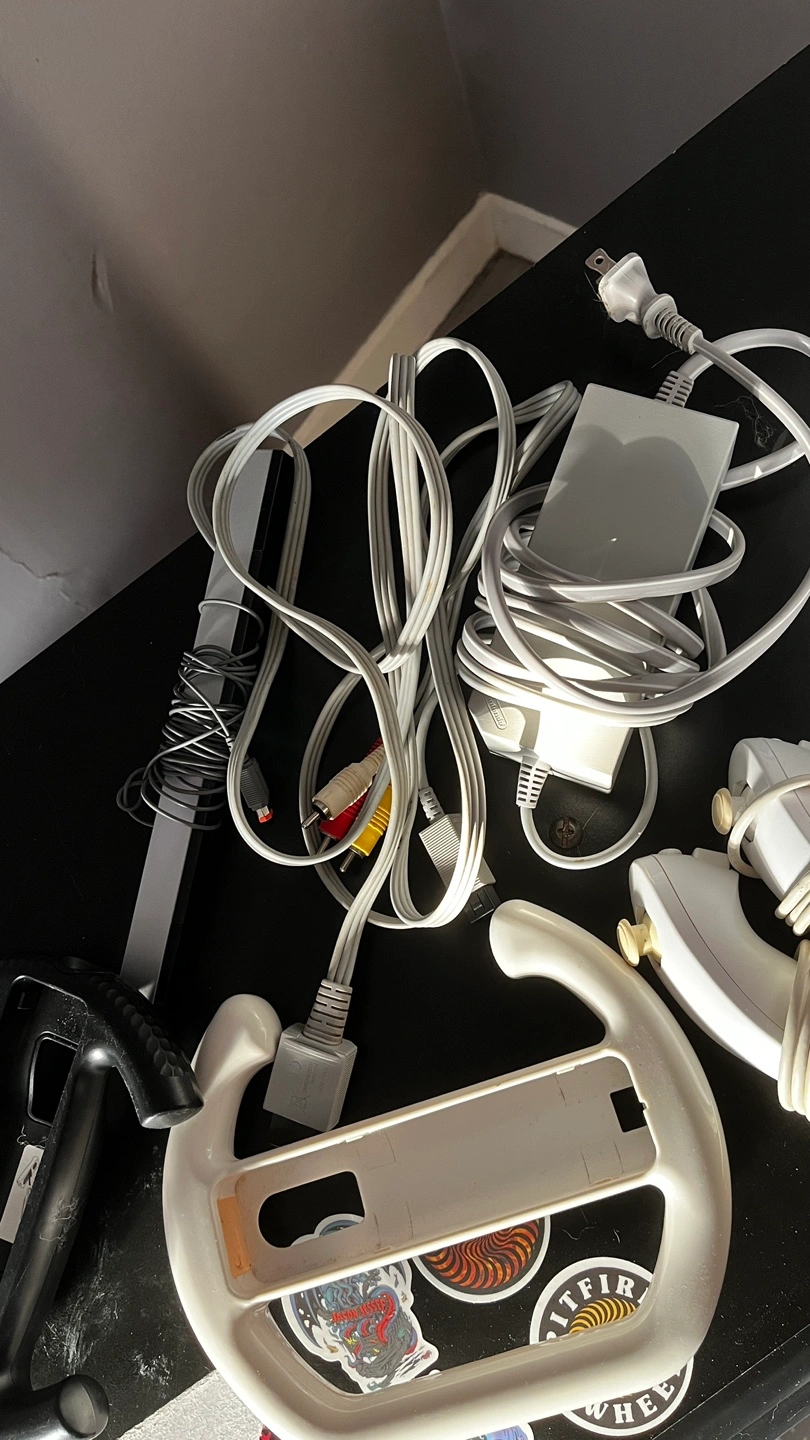 Comes with everything you need to start playing right away! Only selling due to no longer having the time for it and would like to clear up some extra space. Selling all the games with it along with controller attachments such as the fishing rod, steering wheels, nunchucks and controller extender attachment for legend of Zelda! Pick up or meet in town! 150 OBO