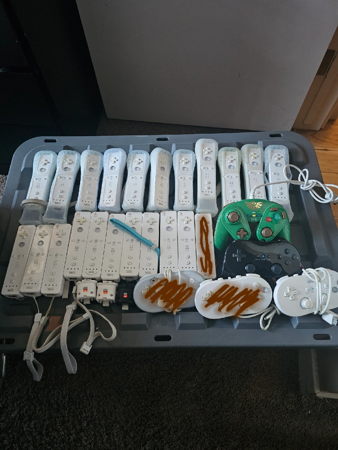 -Nintendo Wii Remotes $20 Each -Nintendo wii Nunchucks $10 Each -Nintendo Wii Classic Controllers (1 Left) $25 Each -Nintendo Wii Pro Controllers $25 -Nintendo Wii Motion Adapters (4 Left) $10 Each -Zelda Pro Controller $30