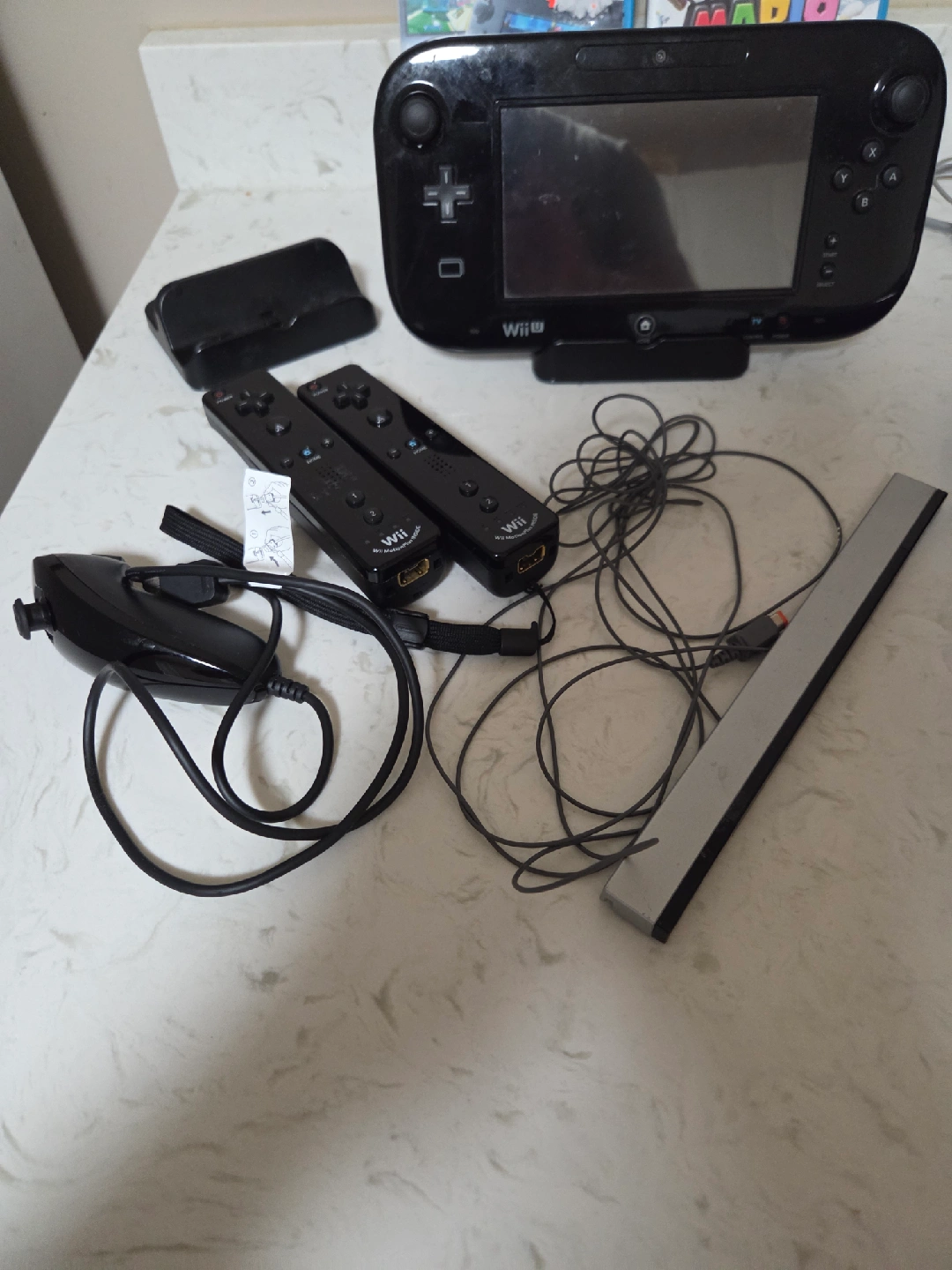 Selling a used Nintendo Wii U console in good condition! Comes with the console, gamepad, sensor bar, two Wii remotes, and the power adapter. Also included are two games: Nintendo Land and Super Mario 3D World. Perfect for some family fun!