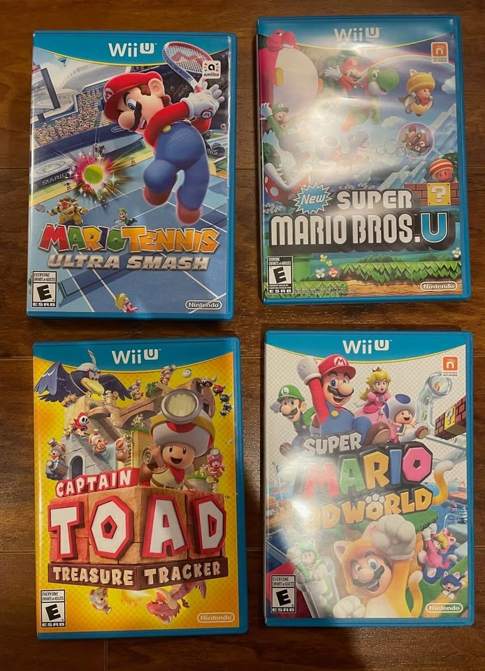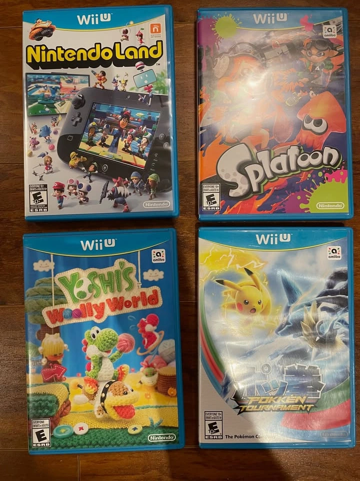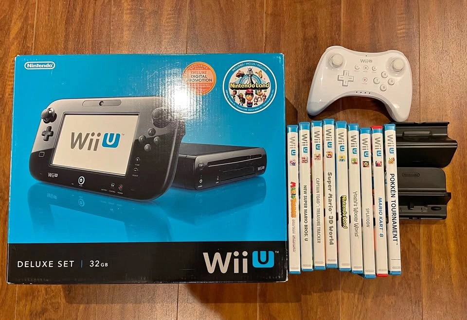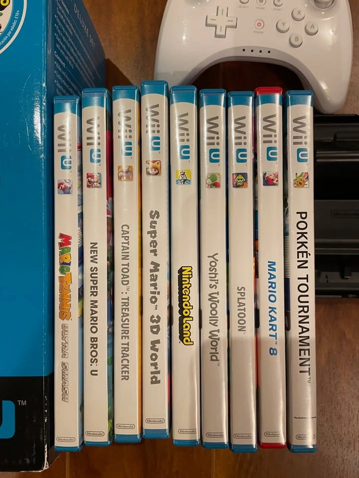 Great near-perfect condition, in original box with original packaging and manuals. Comes with additional Wii U Pro Controller (loose) and extra Game Pad Cradle and Game Pad Stand. Console in perfect order (only lightly used.) I’m the original owner and this has been stored lovingly for many years in my home, recently tested. All games are in great condition CIB Games included: • Mario Kart 8 • Super Mario 3D World • Captain Toad: Treasure Tracker • New Super Mario Bros. U • Mario Tennis: Ultra Smash • Splatoon • Yoshi's Woolly World • Pokken Tournament • NintendoLand (pack-in with console) Console comes with original box (in great condition!), original packaging, manuals and cables (fully CIB). Pick-up in Oakville. Just North of QEW off Bronte. Check out my other Video Game and collectable listings. I’ll be posting more soon.