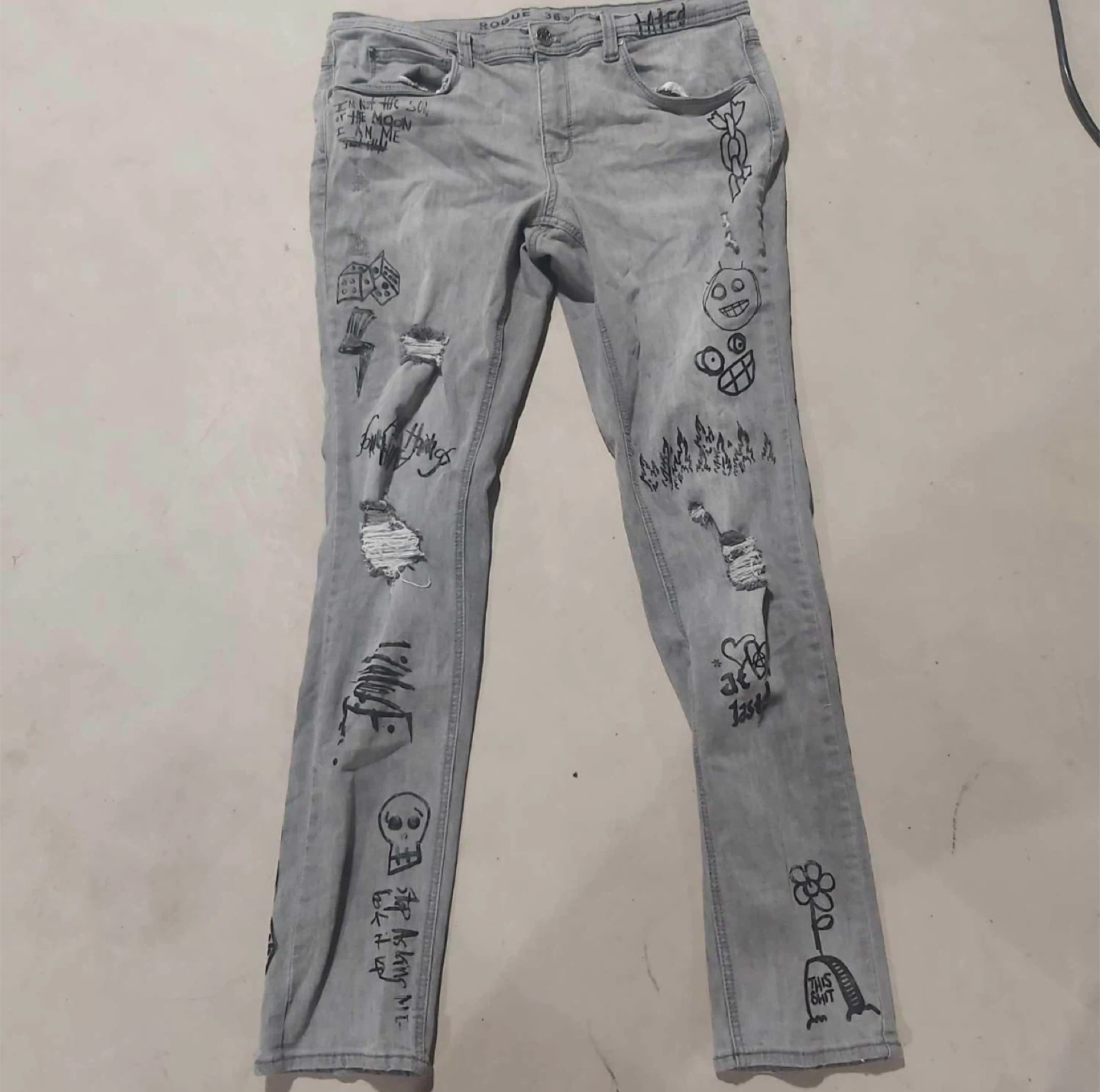 Here are a pair of Ninth Hall Rogue Tapered Printed Smoke Skinny Jeans Size 36