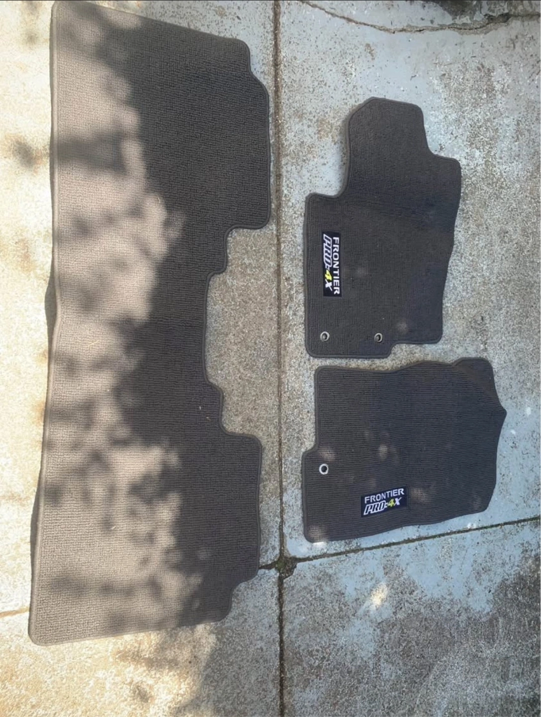 Selling a set of floor mats for a Nissan Frontier PRO-4X. They appear to be in good condition and ready to protect your truck's interior!