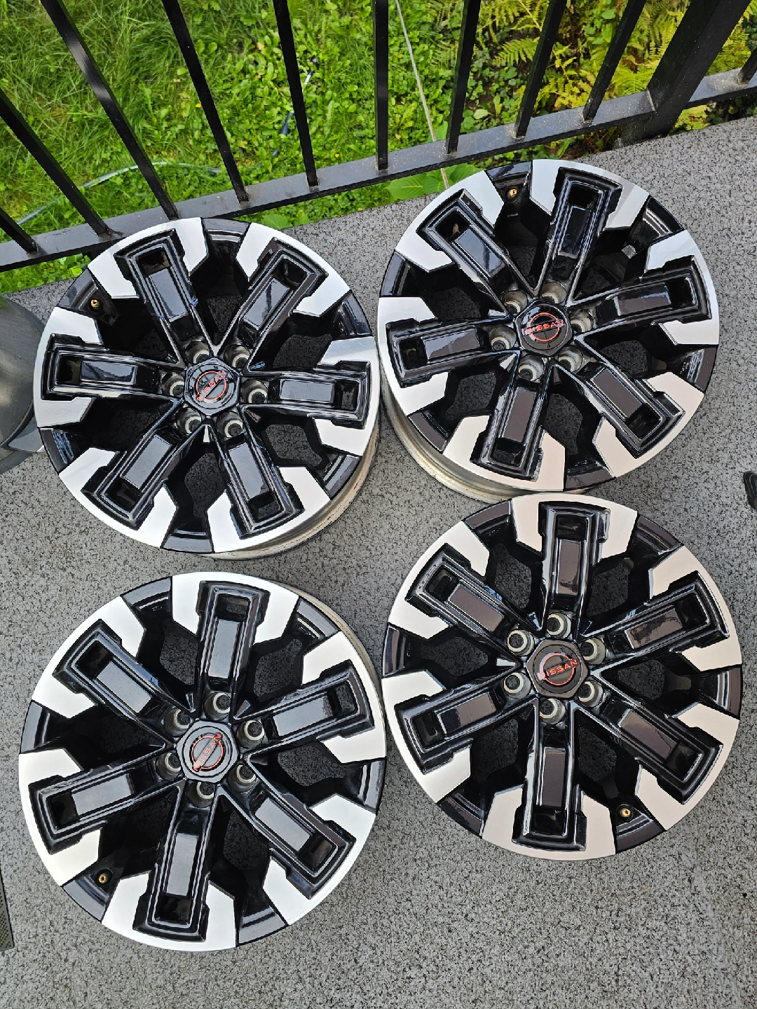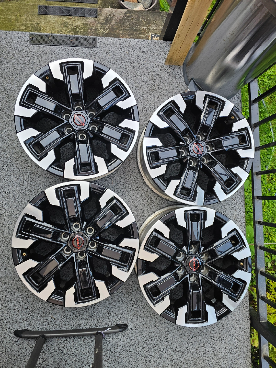 Nissan PRO-4X OEM Wheels In really Mint condition! Set of 4 wheels β 17β x 7.5β Bolt pattern: 6x114.3 Fits: Frontier Pathfinder (2005β2012) Xterra (2005β2015) β These are in absolute mint condition and have zero blemishes: no scratches, no cracks, and no dents. β Less than 20,000 km of use, daily commuter never used for off roading β Like new condition β protected with decals since new * TPMS not included β Bonus: FREE Brand-new set of black decals included