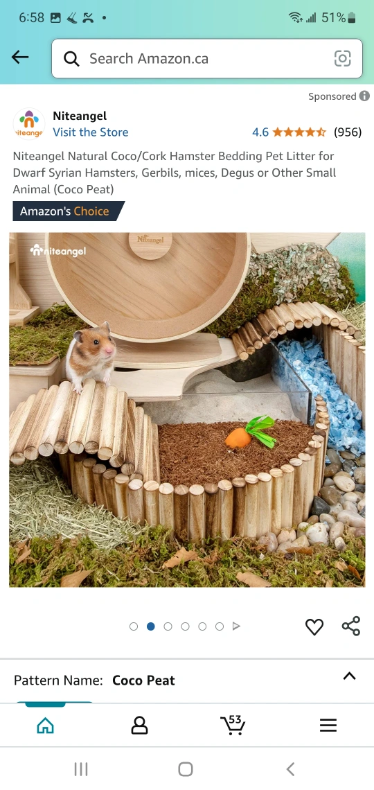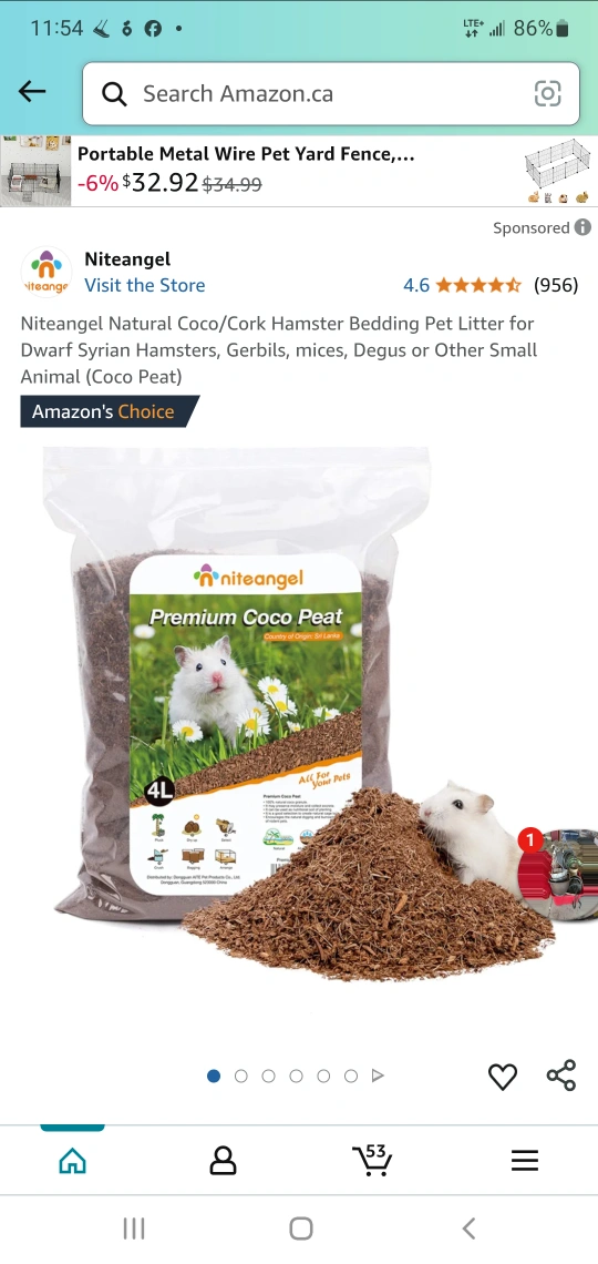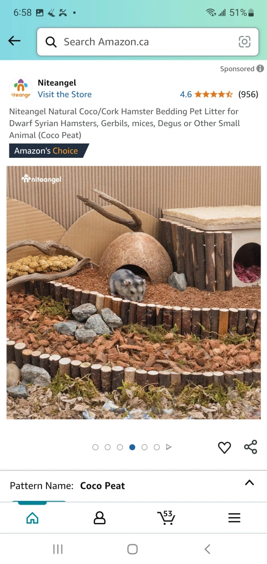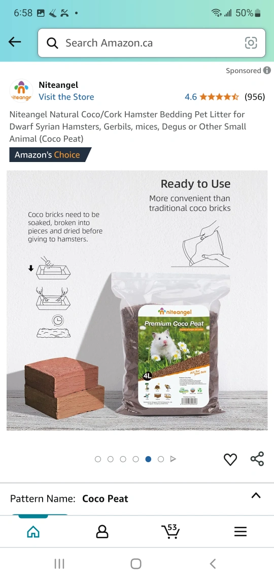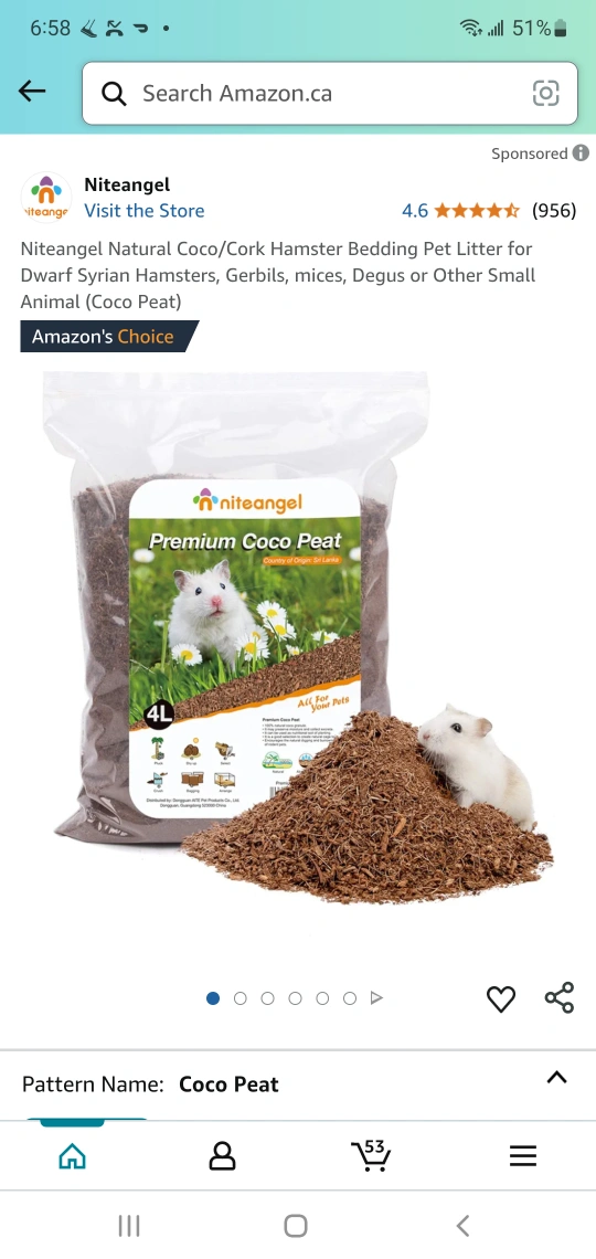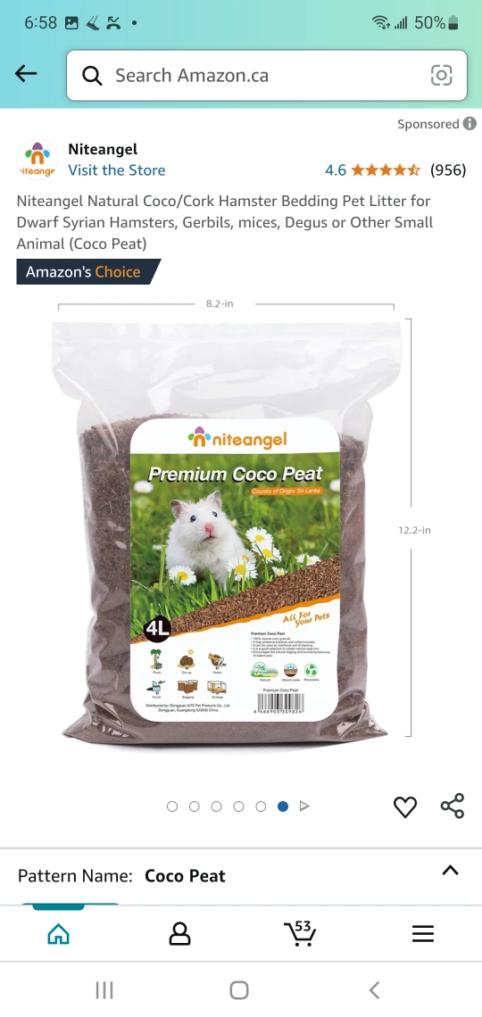 4L bag of Niteangel Premium Coco Peat. Small animal bedding. Excellent for hamsters, gerbils, mice, and other small animals. Coco peat substrate. can also be used as a substitute for other brands for bedding in garden beds use on top to keep moisture in all natural coconut. also very good for moisture control in your garden beds . holds more moisture as it's a coconut brand and keeps bugs away more than mulch mulch can create and attract earwigs coconut brand keeps bugs away. very good for irrigation in your garden soil even if you use one bag for a garden container it will help to keep moisture to the roots as well as keep the pests away.