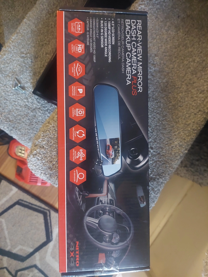 Selling a Nitro 4x4 rear-view mirror dash camera plus backup camera! It features: - 4.5" LCD screen - 1080P HD video recording - 120-degree wide angle - Built-in G sensor Comes with parking monitor, loop recording, and motion detection functions as well