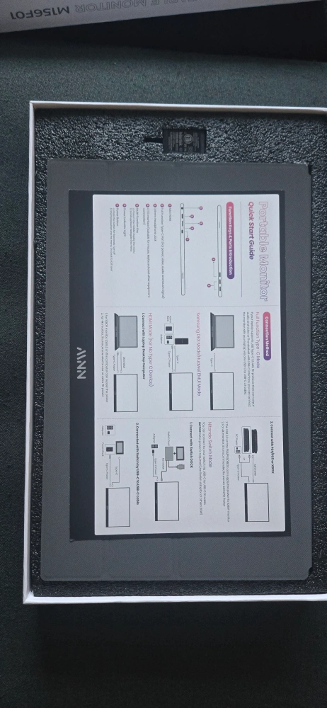 Selling a NNIV portable monitor, model M156F01. It comes with its original box and a quick start guide to help you get set up. This portable monitor is perfect for anyone needing an extra screen on the go.