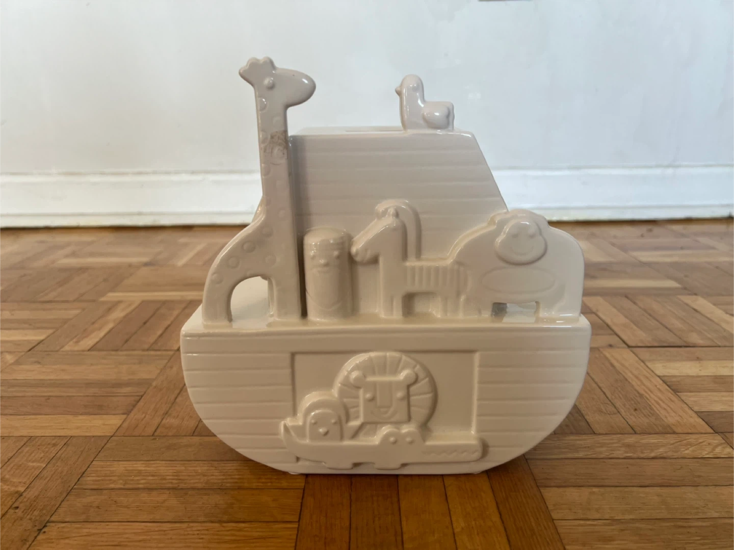 Horse sounding bank - Super cute Noah's Ark coin bank! Features a variety of animals like giraffes, lions, and elephants. Great for a nursery or kid's room