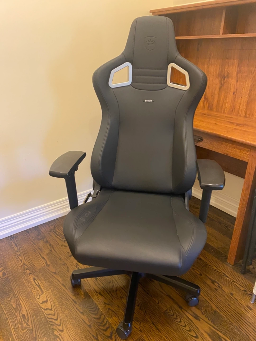Original price is $900 Excellent condition like new. Selling a Noblechairs Epic gaming chair in black with cushion sets. It's in great shape and ready for a new home! This chair is super comfortable for long gaming sessions or working from home. The ergonomic design provides excellent support, and the sleek black finish looks great in any room
