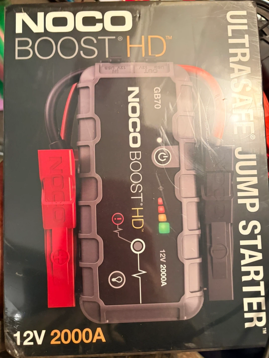 Selling a brand new NOCO Boost HD GB70 UltraSafe Jump Starter! It's still in its original packaging and ready to go. This jump starter is a 12V 2000A model, perfect for getting your car started in a pinch. It's ultra-safe and easy to use. The box is included!