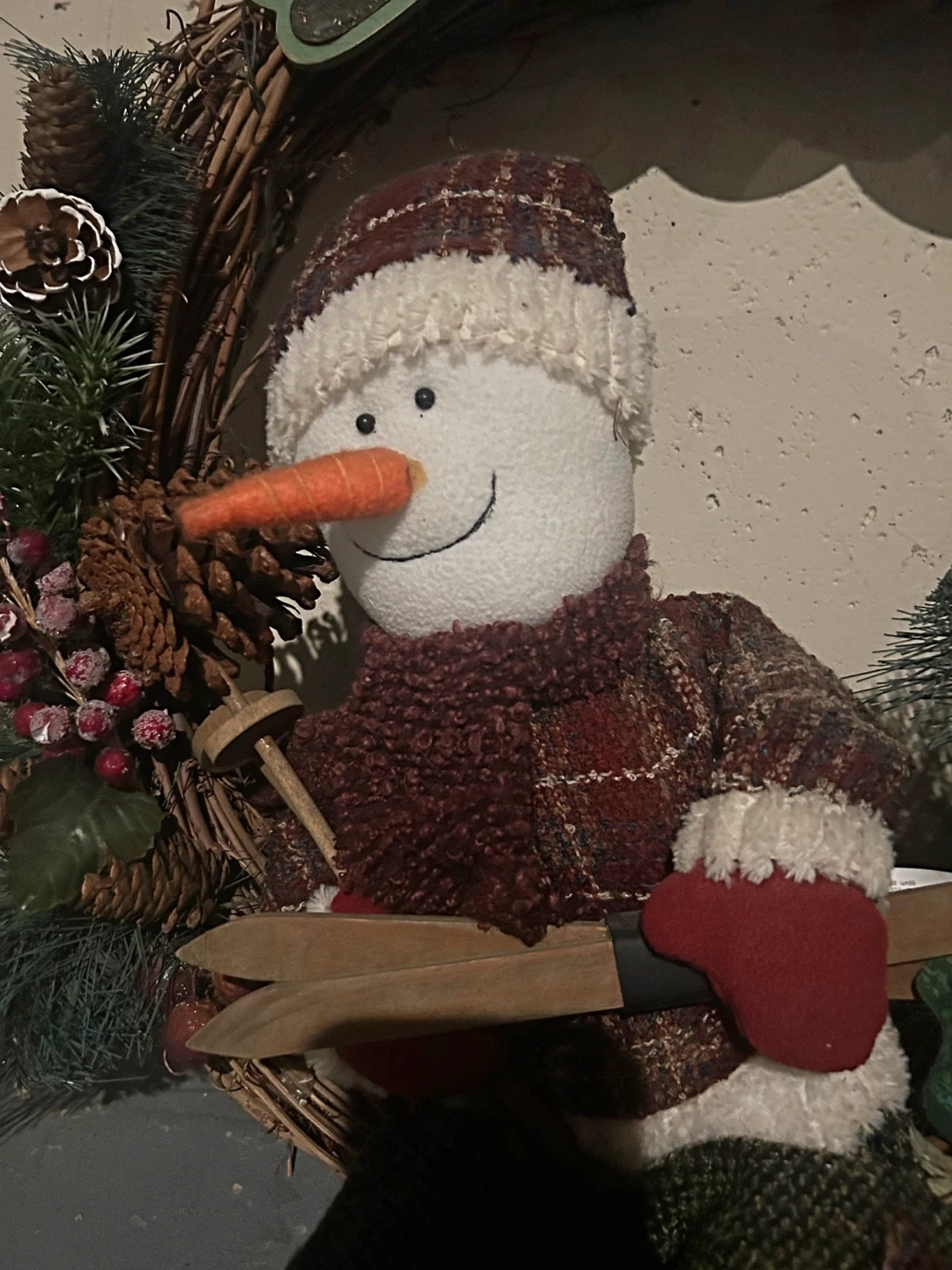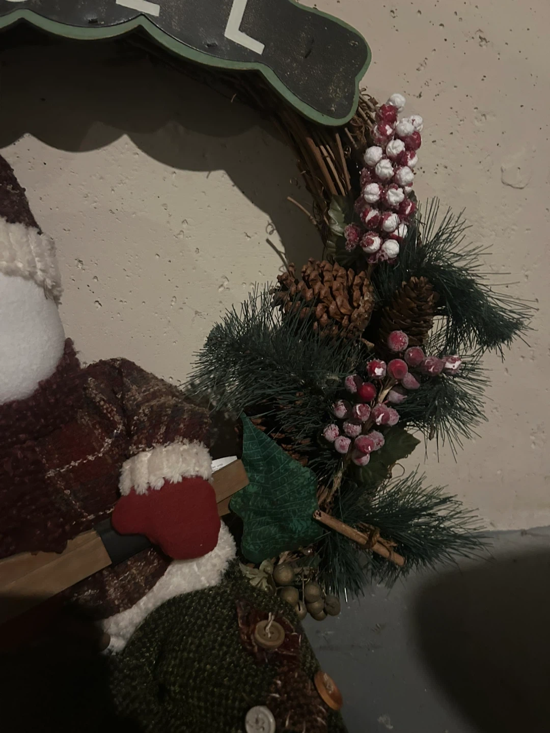 • PICK UP ONLY • Get ready for the holidays with this rustic festive Noel Christmas wreath! It features a cute snowman nestled amongst the pinecones and berries. Perfect for adding a touch of seasonal cheer to your home & is a warm way to welcome guests through your front door! Asking $40 OBO. Open to offers! :)