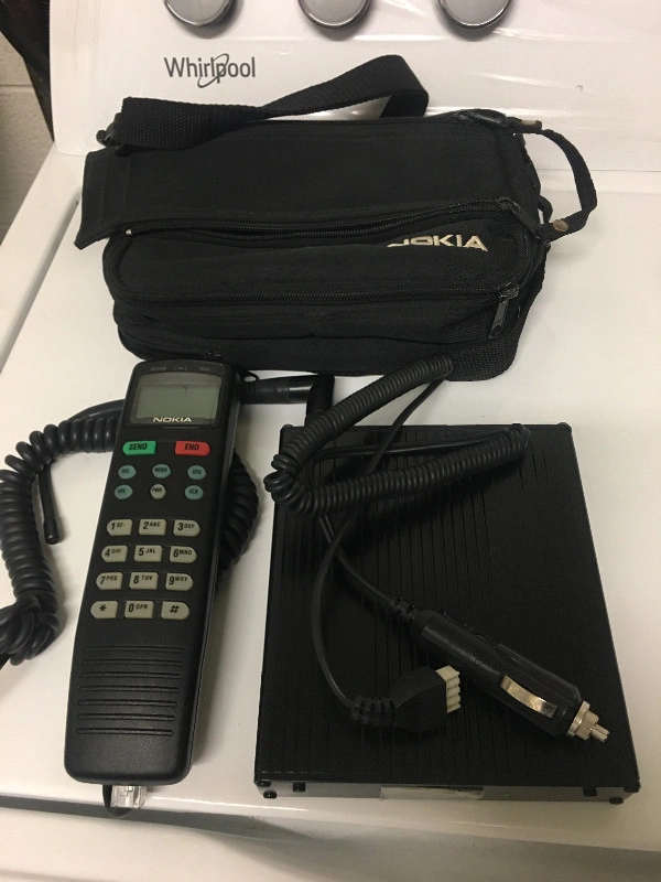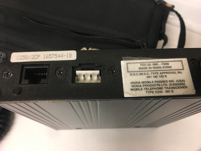 Selling an old collectible Nokia car mobile phone. Model Type C250 - MK II. The antenna plastic cover is broken but actual antenna is ok. Comes with a Genuine Nokia bag.